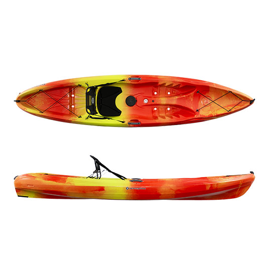 デッキの上に座るタイプのカヤックです。艇本体が中空構造であるため、転覆しても沈みにくいです。視界が高く広々とした湖や海での使用に適しています。