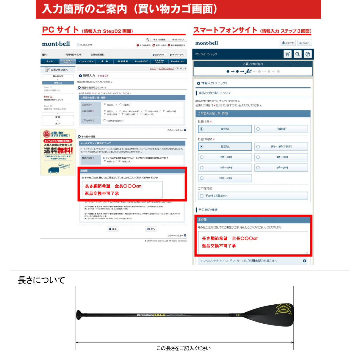カーボンを使用した軽量なレースモデルです。使用者の身長や体型に合わせてシャフトをカットして長さを調節し、グリップを取り付ける必要があります。【1ピースパドル】