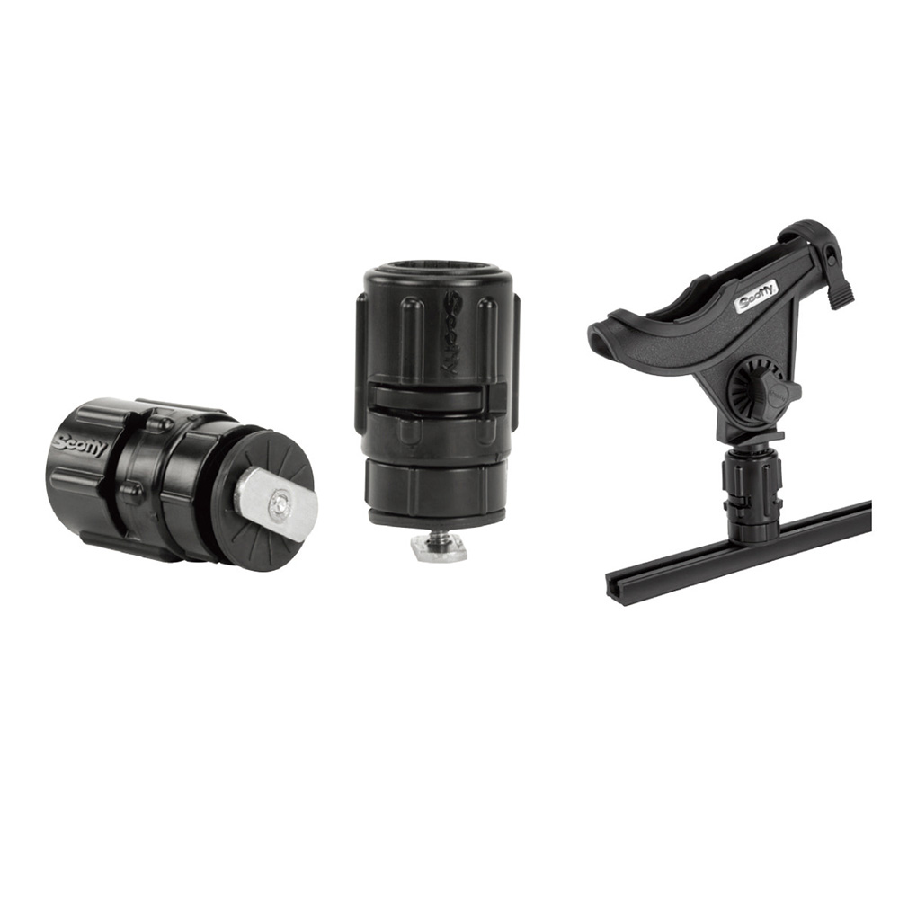 SCOTTYのロッドホルダーなどを、ギアトラックスレール、スライドトラックスシステムへ取り付けるためのアダプター。