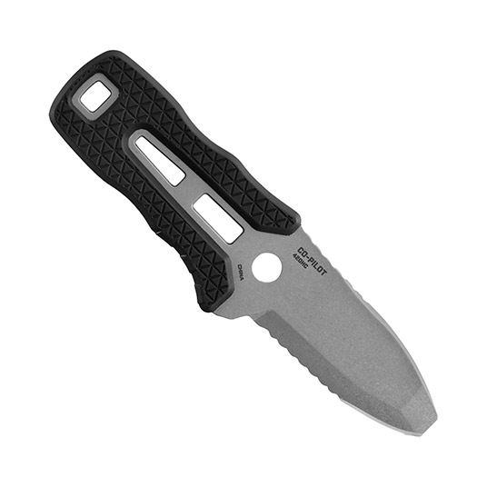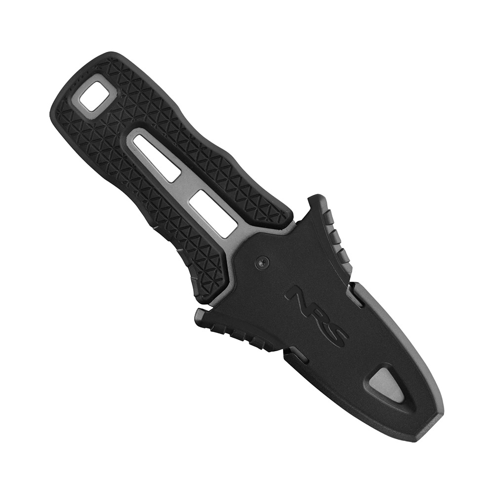 ウォータースポーツなどの際に携行するレスキューナイフです。スローロープや釣り道具を携行して水上へ出る際は必携のアイテムです。エッジはロープなどを切断しやすい波刃を採用しています。濡れた手でも滑りにくいポリプロピレン製のグリップを備え、刃がついている側がどちらか目視せず握るだけで分かる形状になっています。さらに酸素ボンベのバルブレンチ、リーシュ取り付け用ホールを備えています。片手の親指だけでロック解除できるシースを採用し、シンプルながら安全性と確実性を確保しています。全長を抑えたコンパクトな設計をしており、パドリングや再乗艇の際などに干渉しにくくなっています。