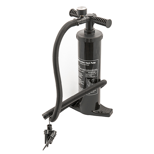 ハンドルを引いても押しても空気を送りだせるダブルアクションシステムのポンプです。空気圧を確認できるゲージ付き。