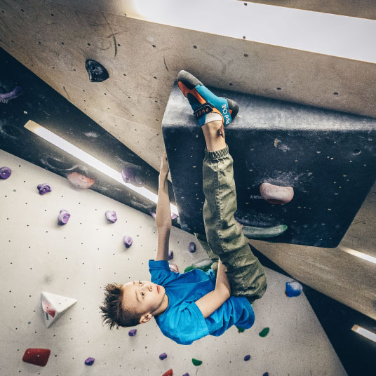 ワイドラストとつま先部分の伸縮を妨げないデザインを採用。足の指でホールドを「掴む」感覚を養い、つま先を必要以上に圧迫して成長を妨げないよう考慮しています。