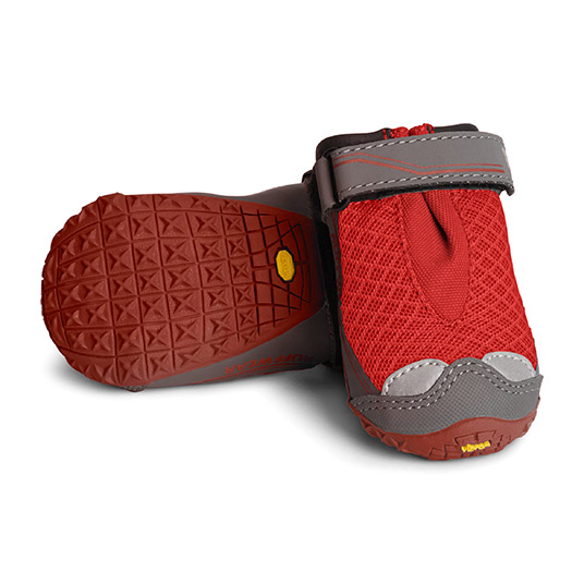 抜群のグリップ力を発揮するヴィブラム®ソールを採用し、岩などから犬の肉球を保護するオフロード用ブーツ。反射テープ[スコッチライト™]が夜間の視認性を高めます。アッパーには通気性に優れたメッシュ素材を使用。足首のベルクロでしっかりとしたフィット感が得られます。多くの犬は前足が後ろ足より幅広です。2個1セットのため、前足と後ろ足の両方にフィットするサイズをお選びください。