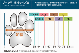 ● 犬が普通に立っている状態(体重がかかっている状態)で最も足の幅の広い部分を測定します。