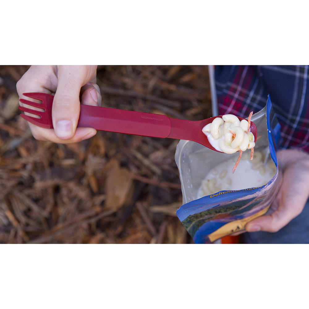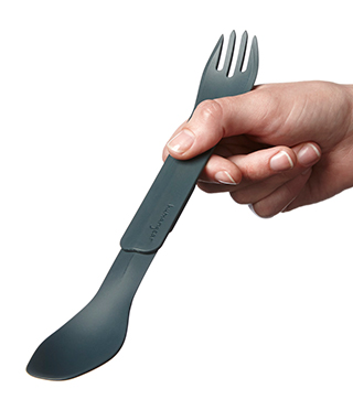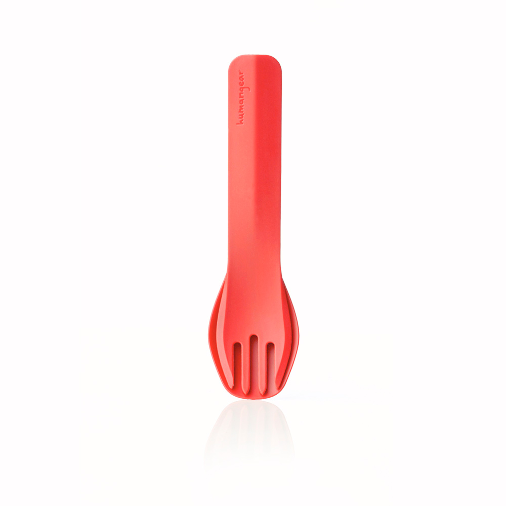 「持ちやすさ」と「使いやすさ」にこだわったフォークとスプーンの2点セット。軽量ながら耐久性の高い素材を使用しています。スプーンとフォークを連結することもでき、底の深いクッカーにも対応。3色展開。
