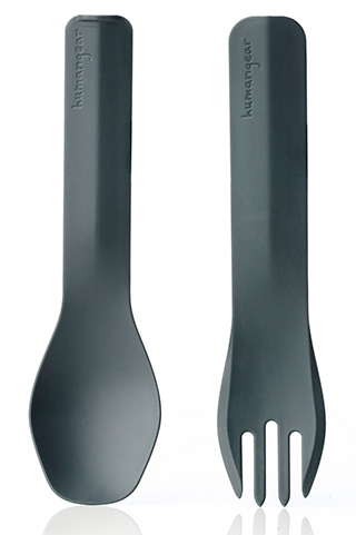 フォークとスプーンの2点セット。収納時はスタッキングできるので持ち運びに大変便利。