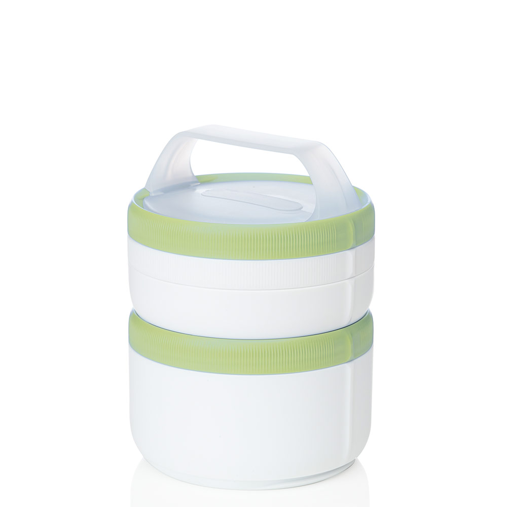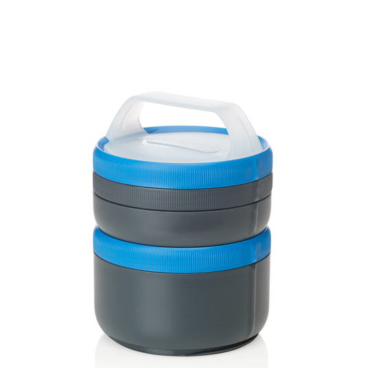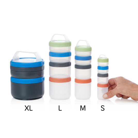 ゴーバイトCLICKがセットになった、重ねて固定できるコンテナのセットです。コンテナ同士は90度ひねるだけで付け外し可能で、コンテナのフタは半回転(180度)ですばやく開閉できます。フタにはパッキン内蔵で液漏れもありません。。付け外し可能なループ付きです。