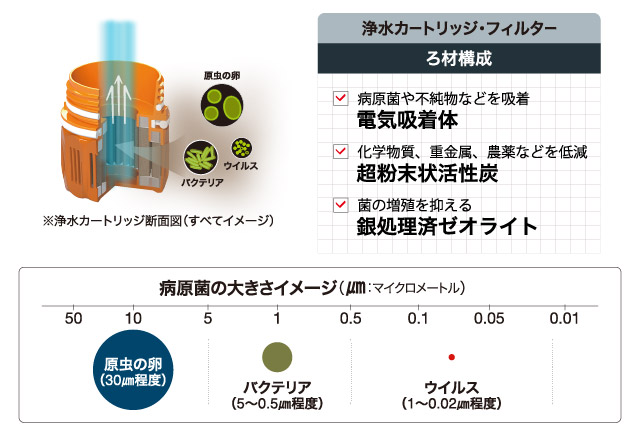 原虫除去率:99.9%(エキノコックス、ジアルジア、クリプトスポリジウムなど)