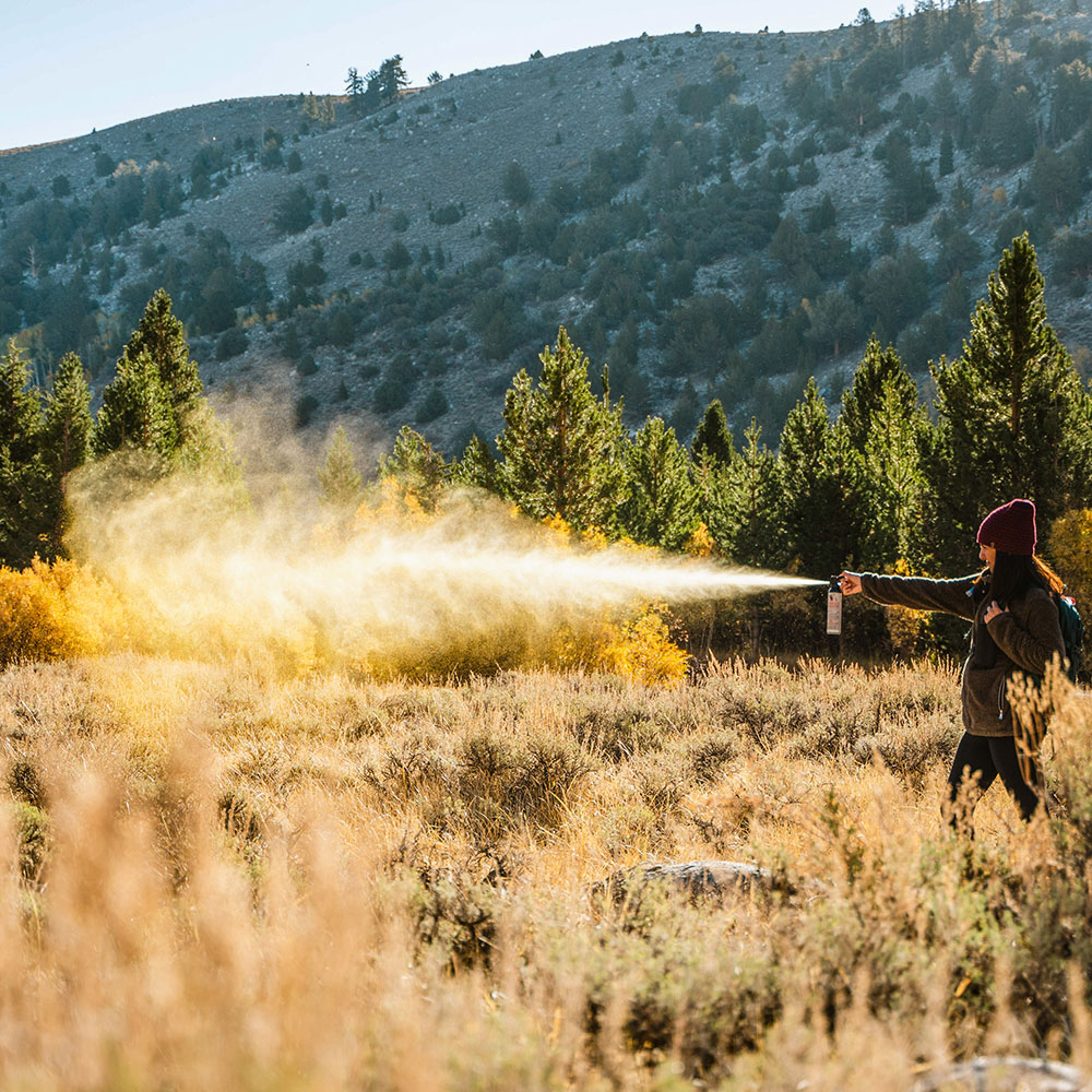 ※本製品はすべての状況下で効果が発揮されること、被害を防ぐことを保証するものではありません。野外で不意にクマに遭遇した場合に、クマの攻撃を抑止する用途で使用されるクマ対策スプレーです。