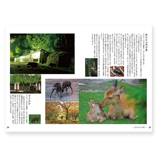 第222世東大寺別当が語る、東大寺境内の動物と植物。境内に住む四季折々の生き物たちの命の営みを美しい写真とともに表現している。