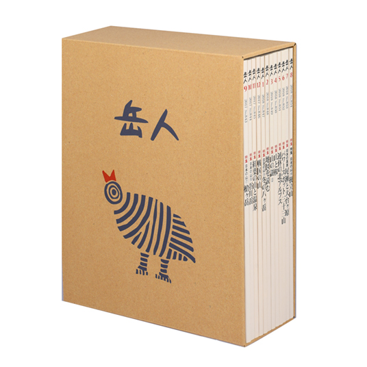 山岳雑誌『岳人』が1年分(12冊)収納できるオリジナルデザインのブックケース。山の版画家として名高い畦地梅太郎さんのライチョウを3面にプリントし、本棚や机上などお好きな場所に設置できます。(2017年9月号からの判型:AB版に対応)