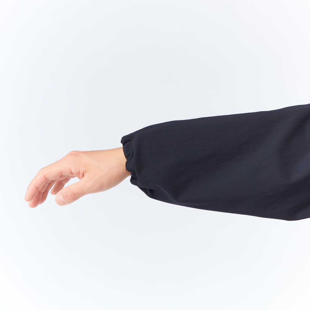 【特長】 ポケット3個(ジッパーなし〈腰2〉、ジッパー付き〈内1〉)/サムエシステム(袖口)