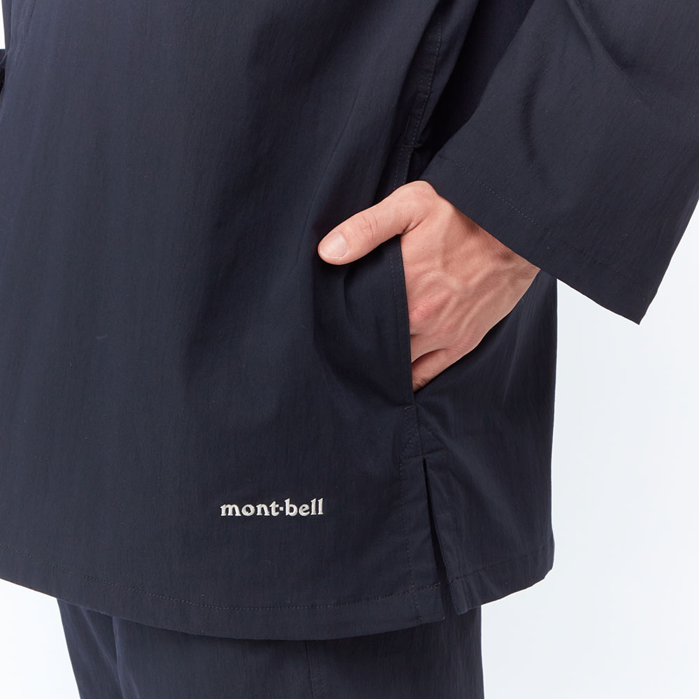 日本古来の「作務衣」にモンベル独自のアイデアと技術を投入して作り上げた機能的なウエアです。表地は耐摩耗性と速乾性に優れ、ストレッチ性を備えた素材を使用。裏地には起毛地を使用した暖かな仕様です。ストレッチ性とゆったりとしたシルエットにより動きやすく、作業着やリラックスウエアとして幅広く活躍します。