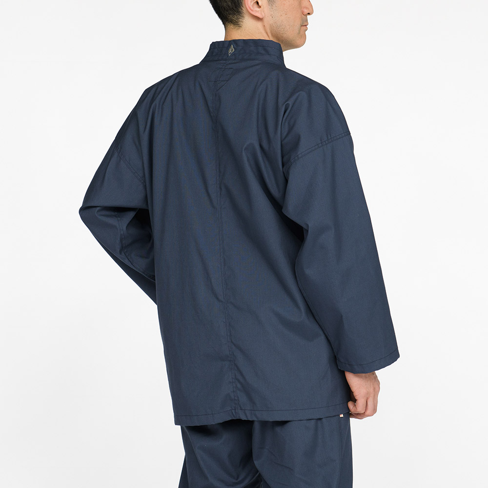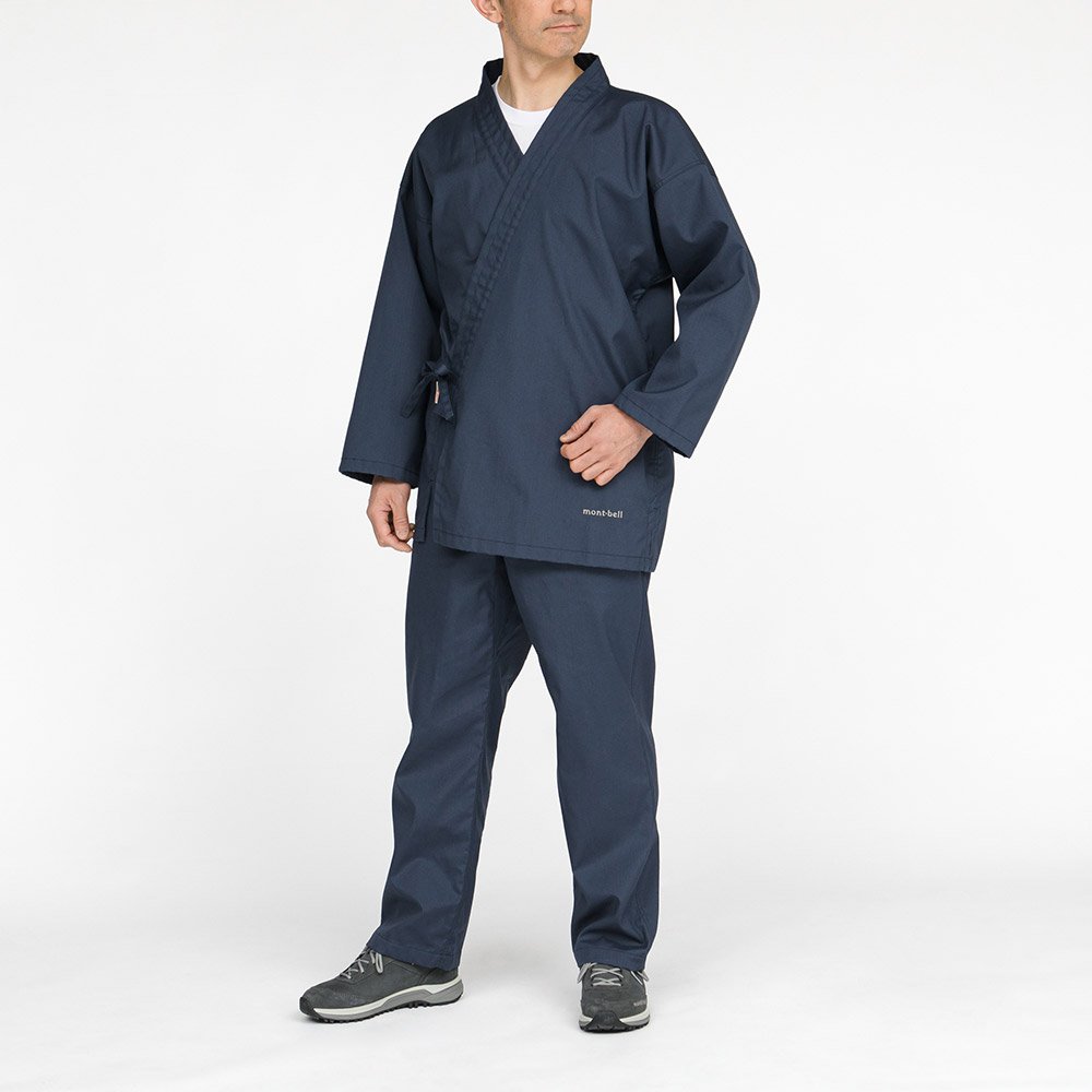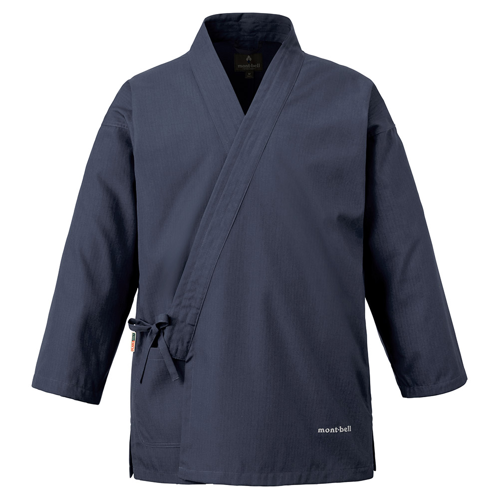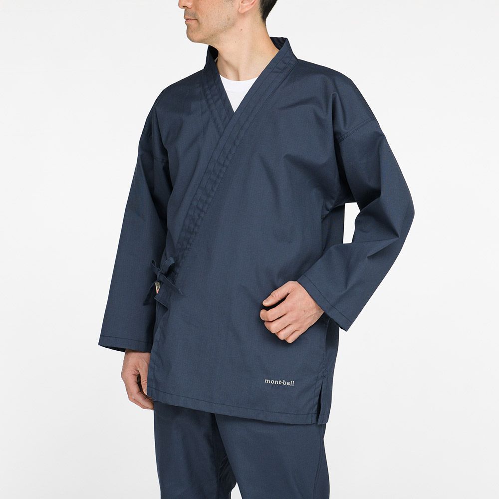 日本古来の「作務衣(さむえ)」をモンベルが独自に開発した難燃性素材フレアテクト®で作りました。野外での調理やたき火などで火の粉を受けても、穴があきにくくなっています。コットンのような自然な風合いと適度なハリを持ち、ゆったりとした着心地で、リラックスウエアや作業着として活躍します。前身頃はひもで結んで留めるシンプルな仕様です。ポケットは合わせの内側にあるため、内容物が落ちにくくなっています。袖口は簡単に絞ることができ、バタつきを抑えられます。※火から完全に身を守るものではありません。
