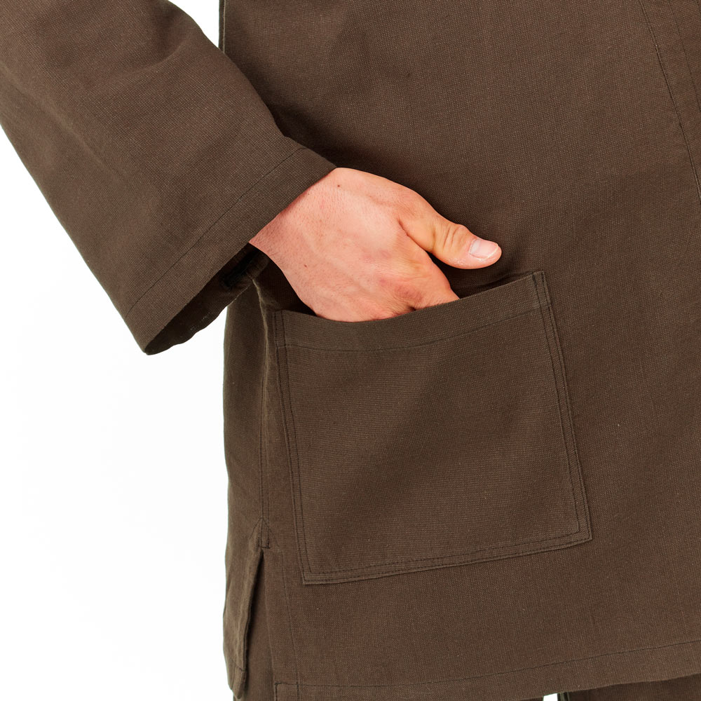日本古来の「作務衣」に、モンベル独自のアイデアと技術を投入して作り上げた機能的ウエアです。作業着やリラックスウエアとして幅広く活躍します。通気性と肌離れのよさで暑い季節でも快適に着用できます。