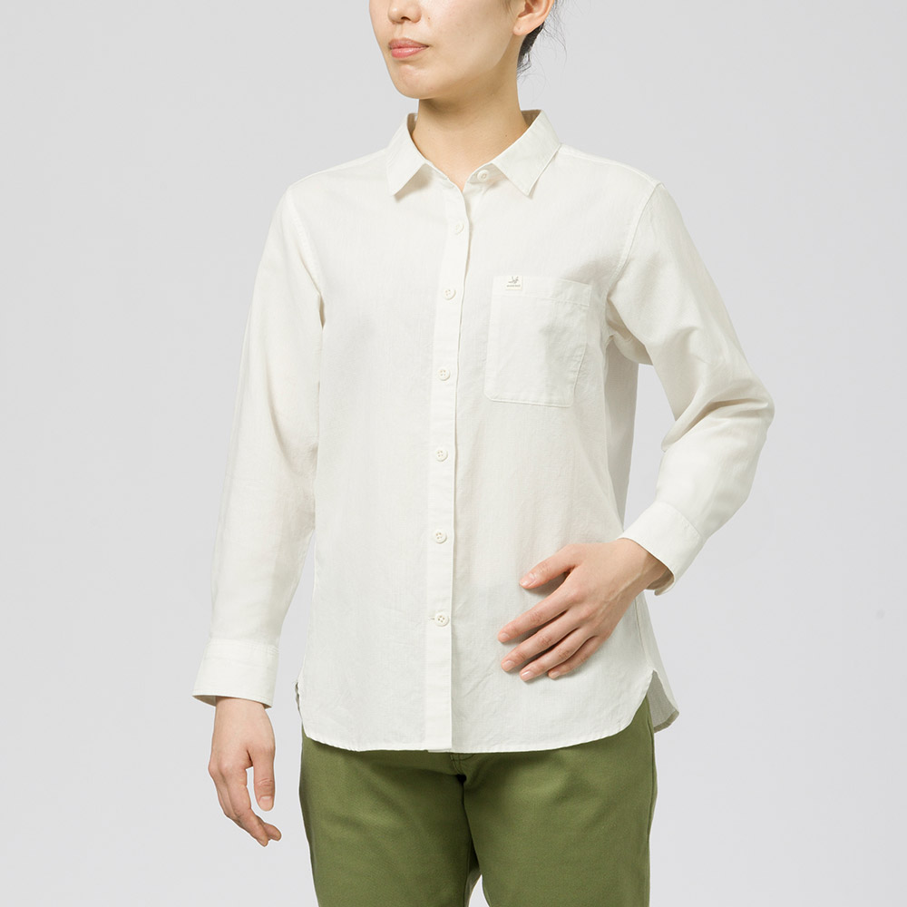 高い通気性を備えた、肌離れのよいシャツです。紙糸が持つ優れた吸放湿性に、コットンの肌触りのよさが加わり、暑い季節でも清涼感のある快適な着心地が持続。ゆったりとしたシルエットで、旅先や日常でのリラックスウエアとしてお薦めです。