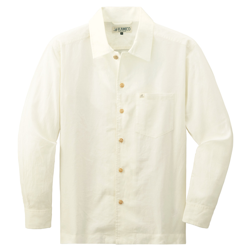 高い通気性を備えた、肌離れのよいシャツです。紙糸が持つ優れた吸放湿性に、コットンの肌触りのよさが加わり、暑い時季でも清涼感のある快適な着心地が持続。ゆったりとしたシルエットで、旅先や日常でのリラックスウエアとしておすすめです。手触りのよい竹製ボタンを使用しています。