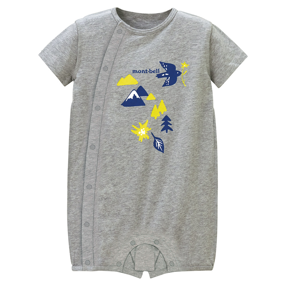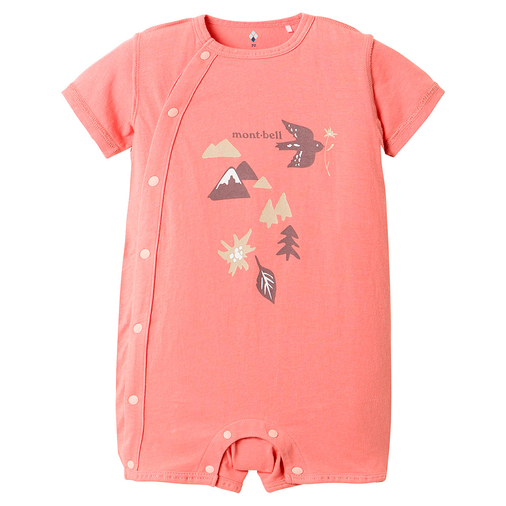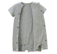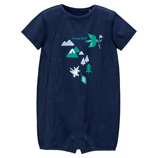 優しい肌触りのコットンを使用したロンパースです。スナップボタンで開閉する前立てと内股は個別に開くことができ、脱ぎ着やおむつ替えも簡単です。縫い代は肌に当たらないよう外側にしています。