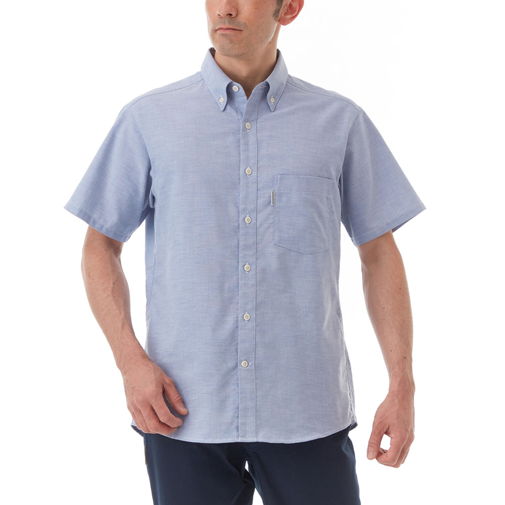 薄手のコアスパンを使用したボタンダウンシャツです。シンプルなデザインで、ビジネスシーンからトラベルまで幅広く着用できます。クールビズにも最適なショートスリーブモデルです。