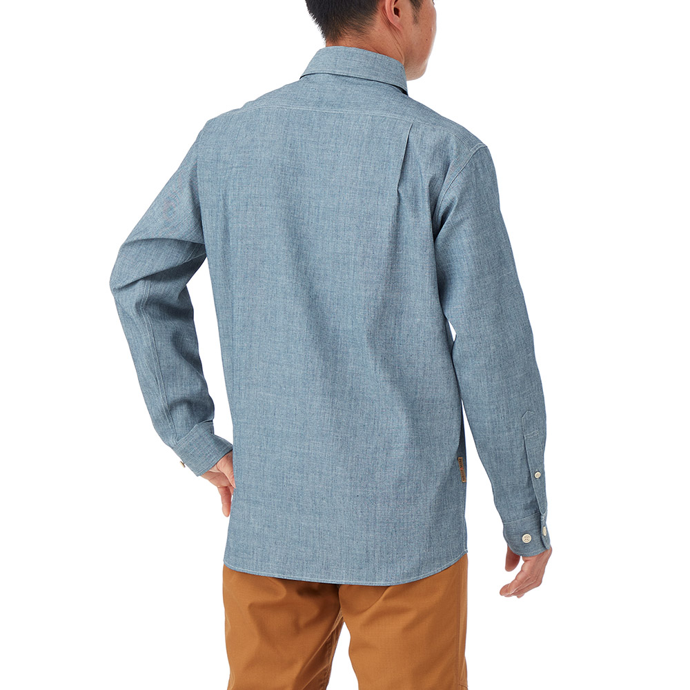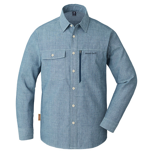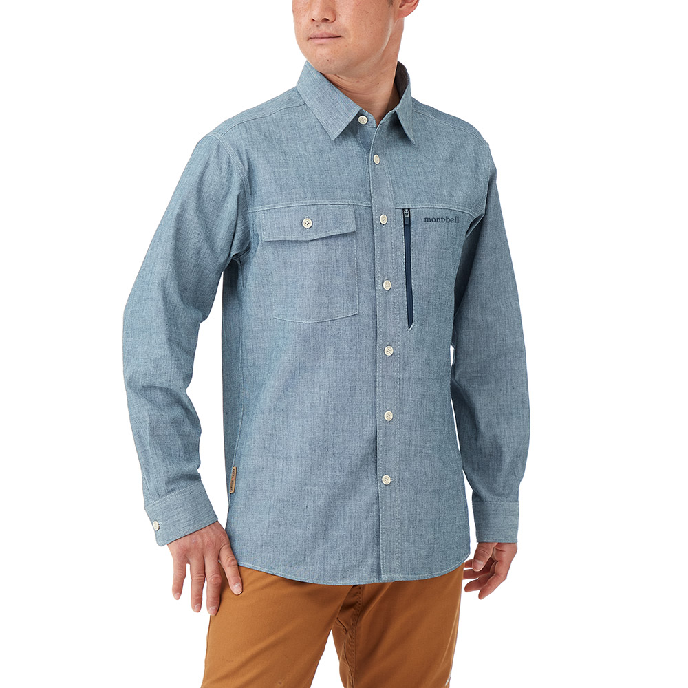 モンベルが独自に開発した難燃性素材フレアテクト®を使用したデニム調のシャツです。野外での調理やたき火などで火の粉を受けても、穴があきにくくなっています。※火から完全に身を守るものではありません。