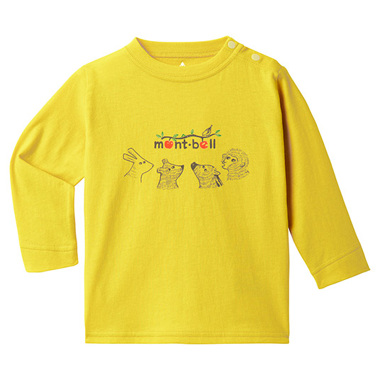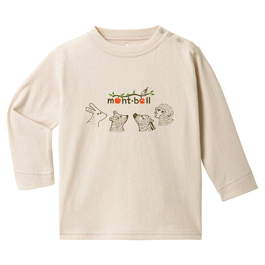 柔らかな肌触りのコットンを使用した薄手の長袖Tシャツです。通気性とストレッチ性に優れるため、元気に動き回る子どもの普段着に適しています。肩口のホックで首元が大きく開くので、脱ぎ着させやすくなっています。