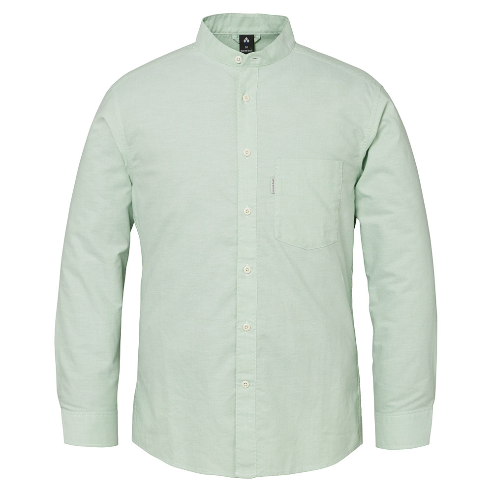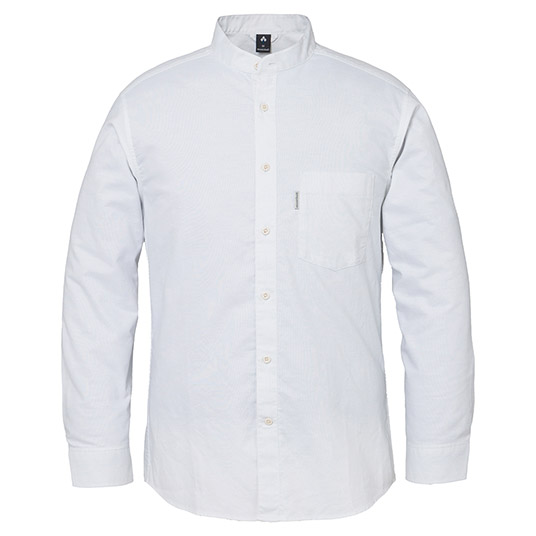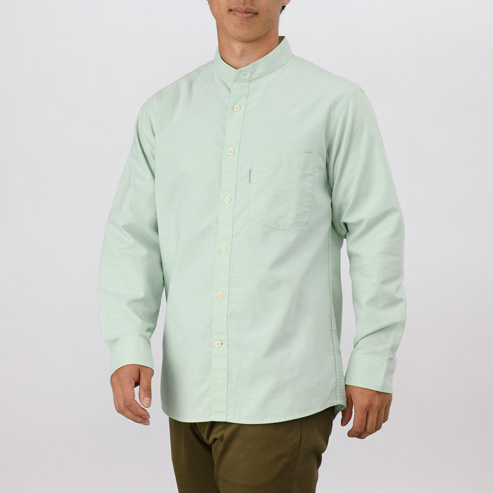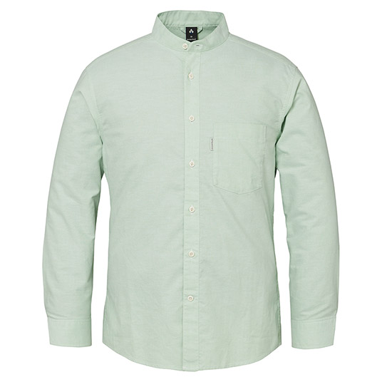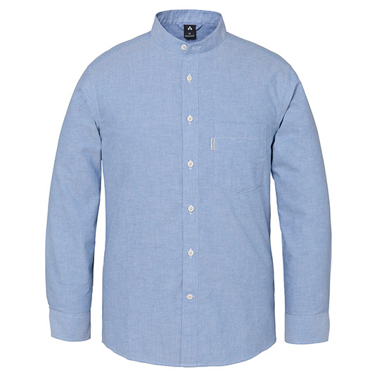 コットンの風合いを持ちながらも速乾性・耐摩耗性を備えたコアスパンを使用した薄手のスタンドカラーシャツです。洗濯しても乾きが早く、形状安定性に優れるためシワができにくくなっています。