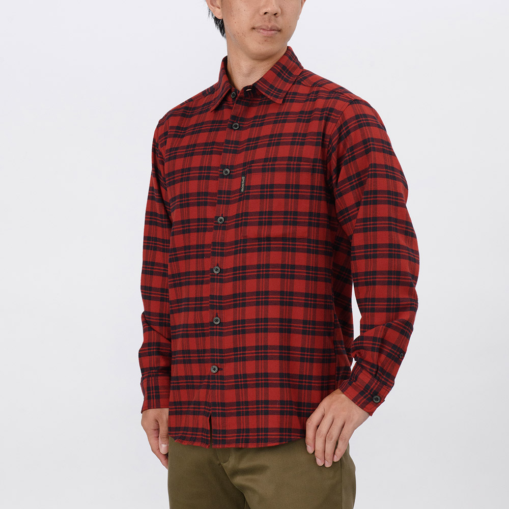 コットンの風合いを持ちながらも速乾性・耐摩耗性を備えたコアスパンを起毛させた中厚手のネルシャツです。洗濯しても乾きが早く、形状安定性に優れるためシワができにくくなっています。