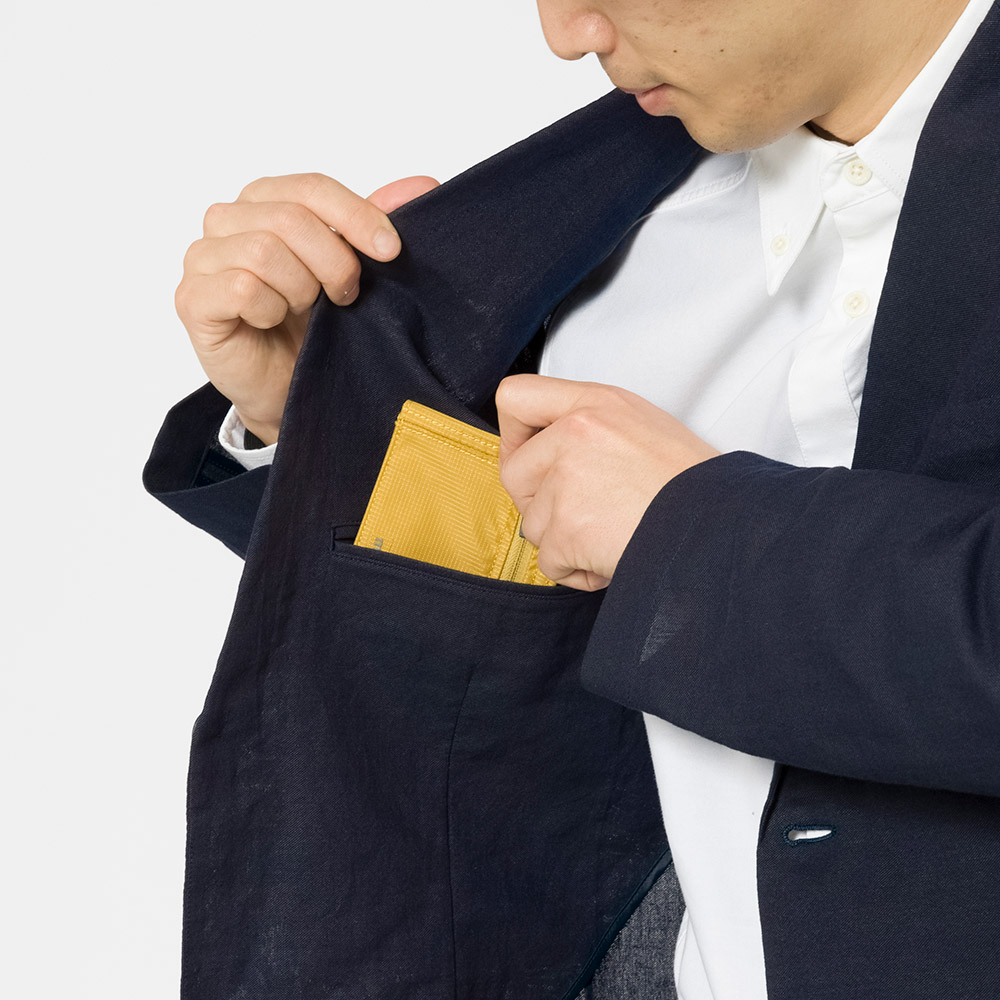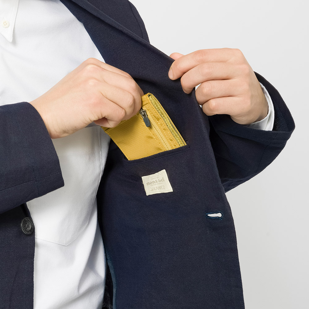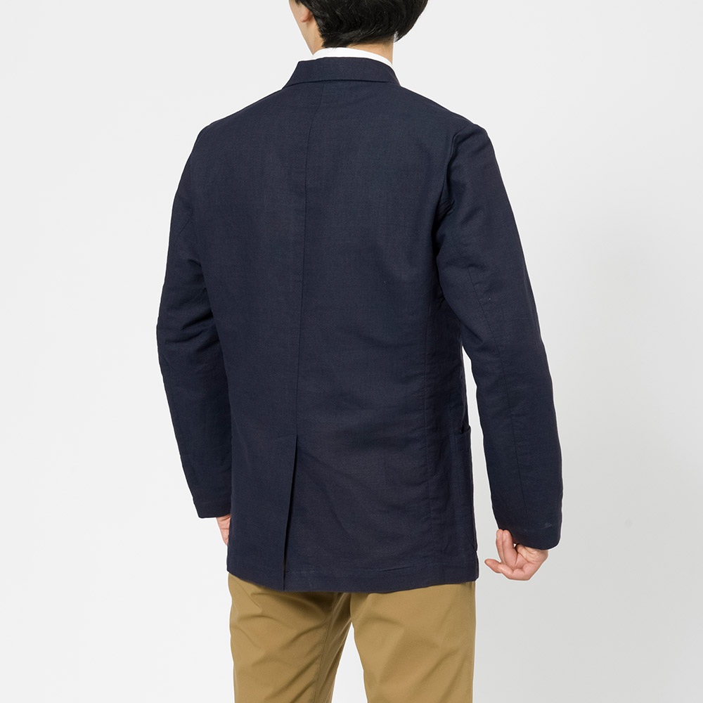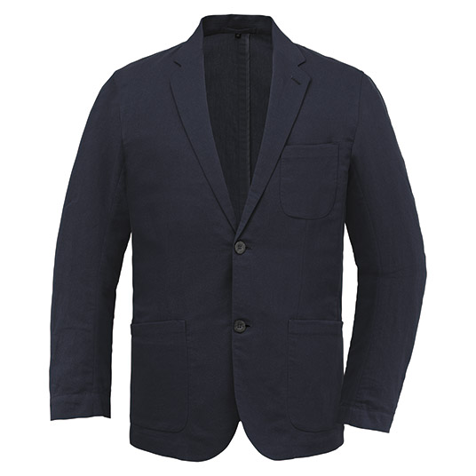 清涼素材・紙糸プラス®で仕立てた、スタンダードな2つボタンのジャケット。涼しく軽やかな着心地です。裏地、肩パッドのないデザイン。旅行に便利な収納ケースが付属します。
