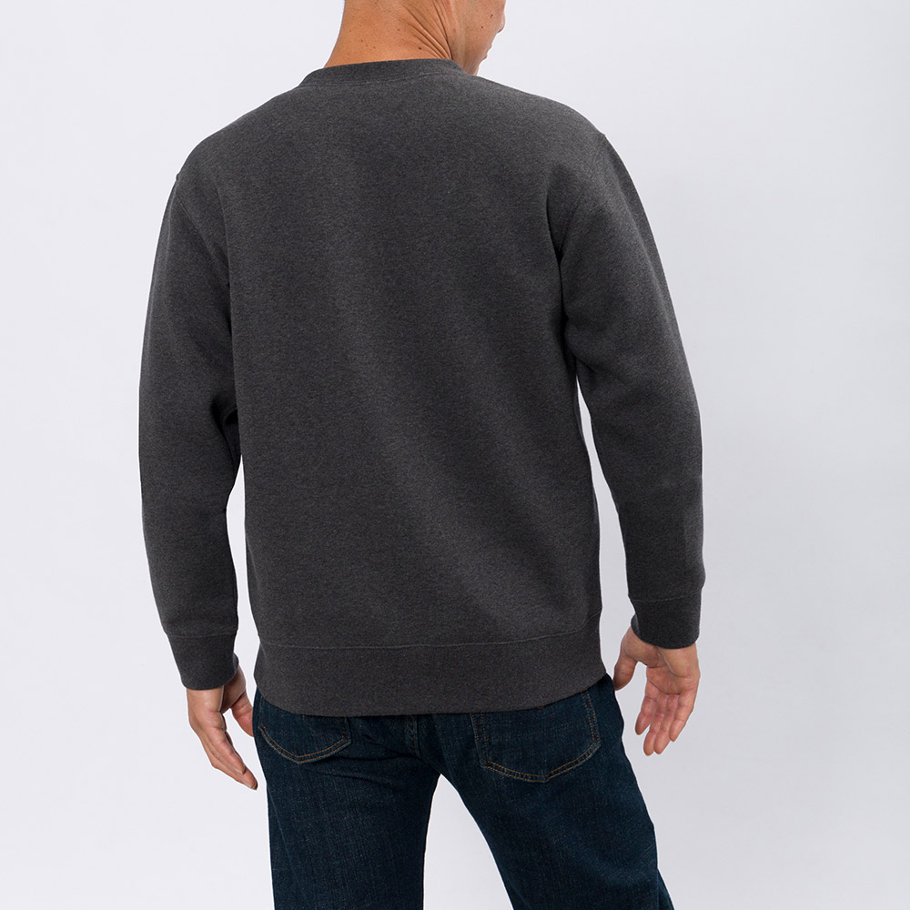 コットンにポリエステルを混紡した素材を使用したスウェットです。裏地は暖かく柔らかな肌触りの起毛地で、しっくりとなじむ心地よい風合いです。
