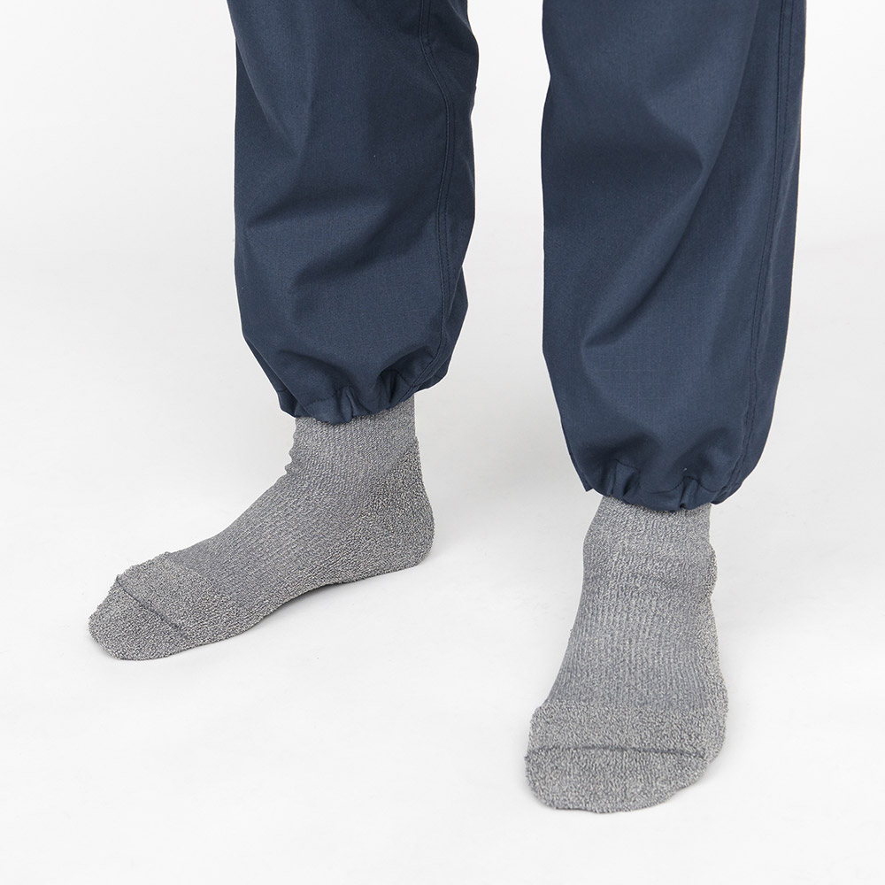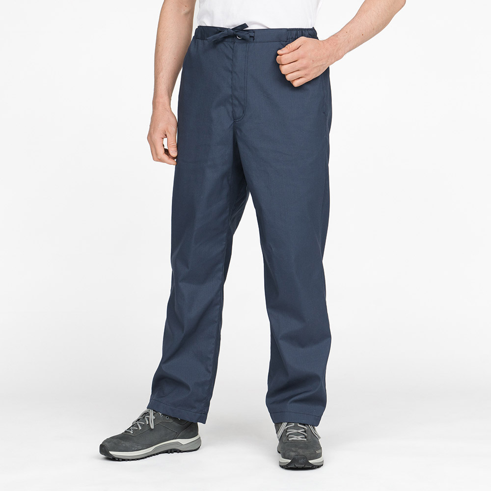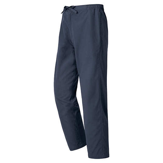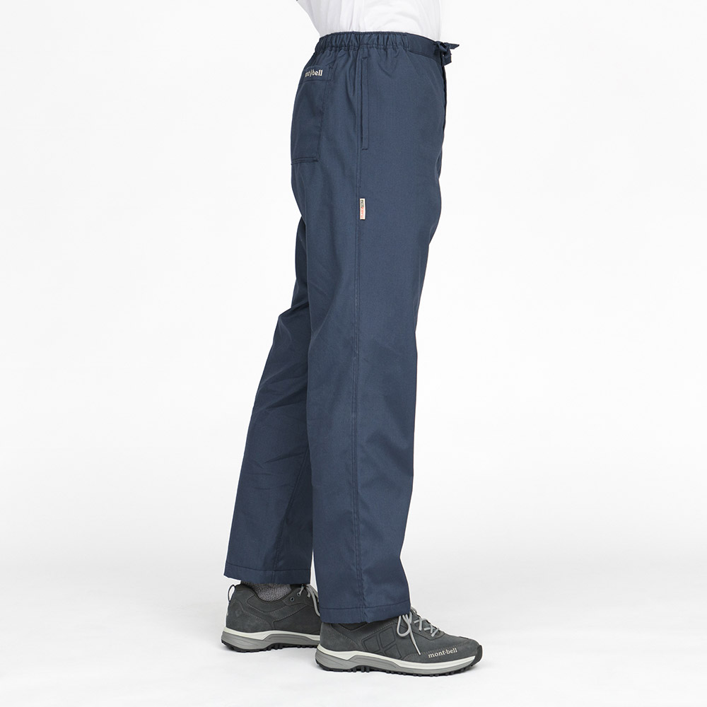 日本古来の「作務衣(さむえ)」をモンベルが独自に開発した難燃性素材フレアテクト®で作ったパンツです。野外での調理やたき火などで火の粉を受けても、穴があきにくくなっています。コットンのような自然な風合いと適度なハリを持ち、ゆったりとした着心地で、リラックスウエアや作業着として活躍します。ウエストはゴムとひもでフィットする仕様です。※火から完全に身を守るものではありません。