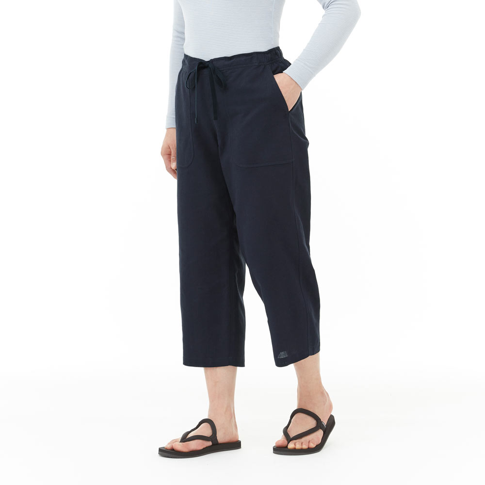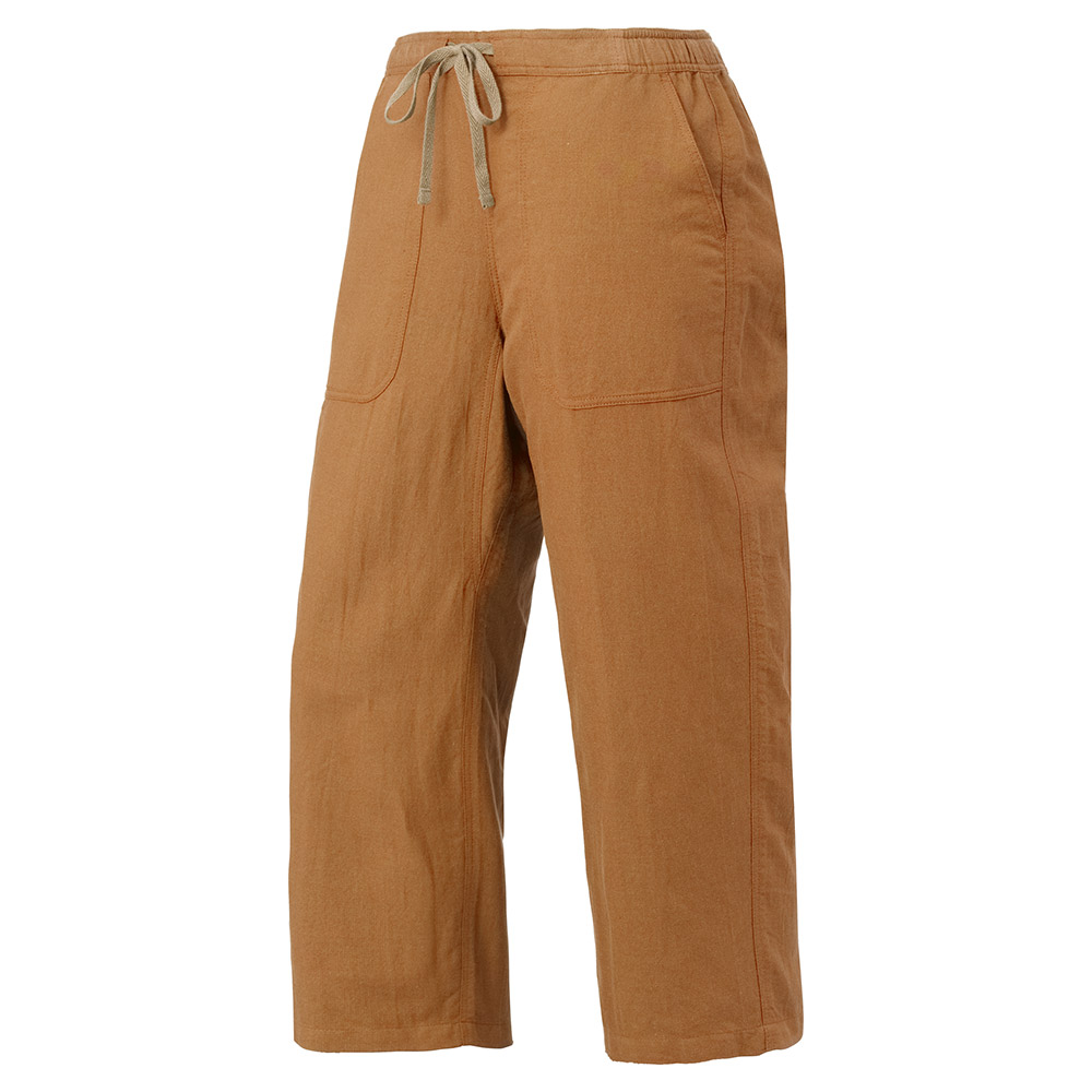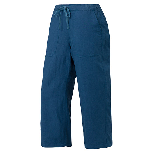 紙糸とコットンを組み合わせた清涼素材のニッカです。軽やかなはき心地で、旅先や日常でのリラックスウエアなどに適しています。ウエストは後ろ半分にゴムを入れて、ひもを解いてもずり落ちない仕様です。