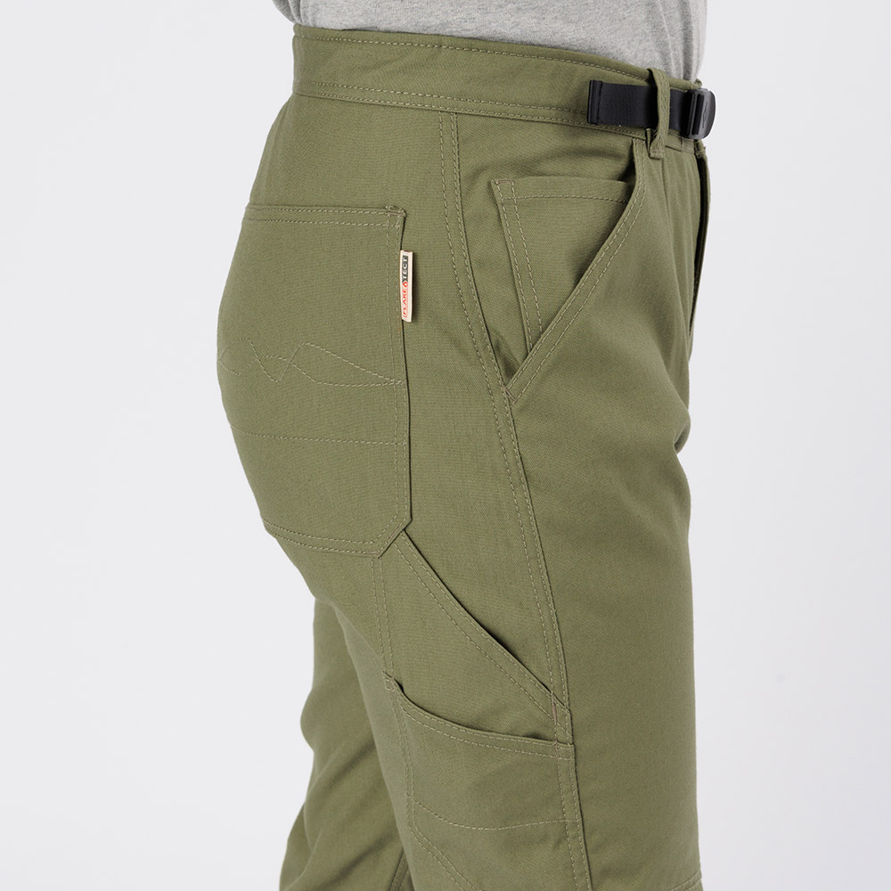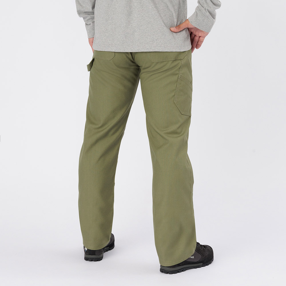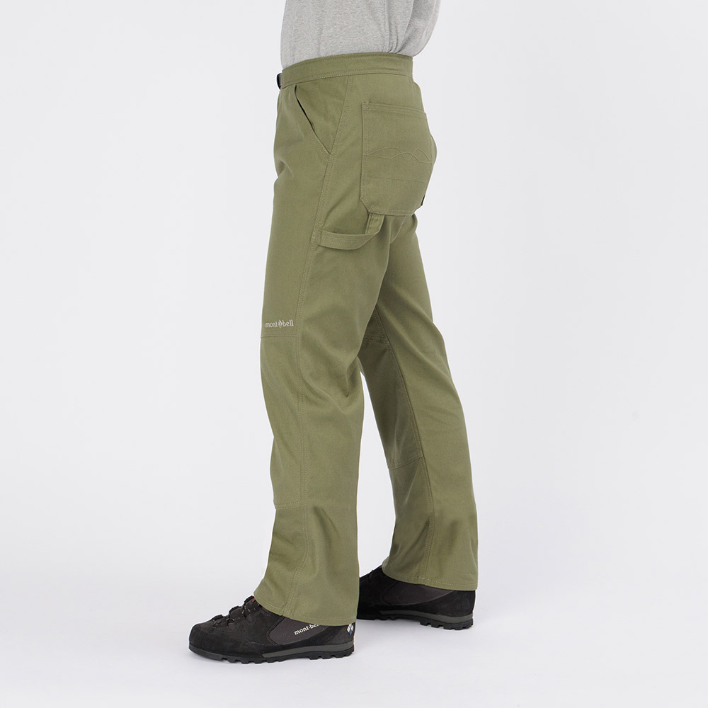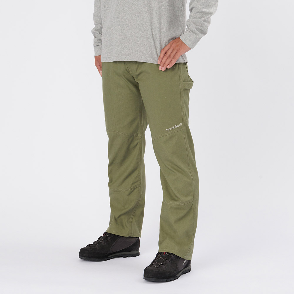 モンベルが独自に開発した難燃性素材フレアテクト®を使用した厚手のパンツです。野外での調理やたき火などで、火の粉を受けても穴が開きにくくなっています。コットンのような自然な風合いと適度なハリを持ち、キャンプから普段使いまで幅広く着用できます。膝部分は立体裁断を施しています。