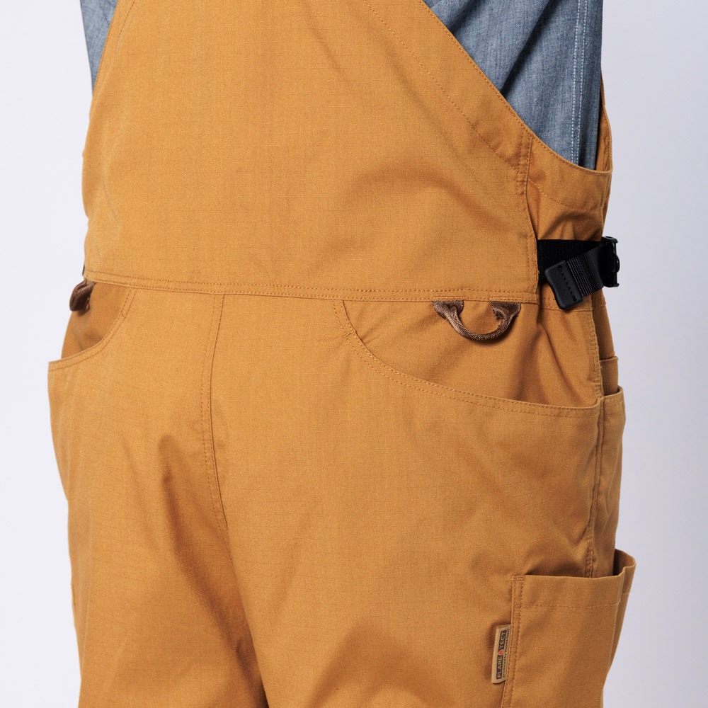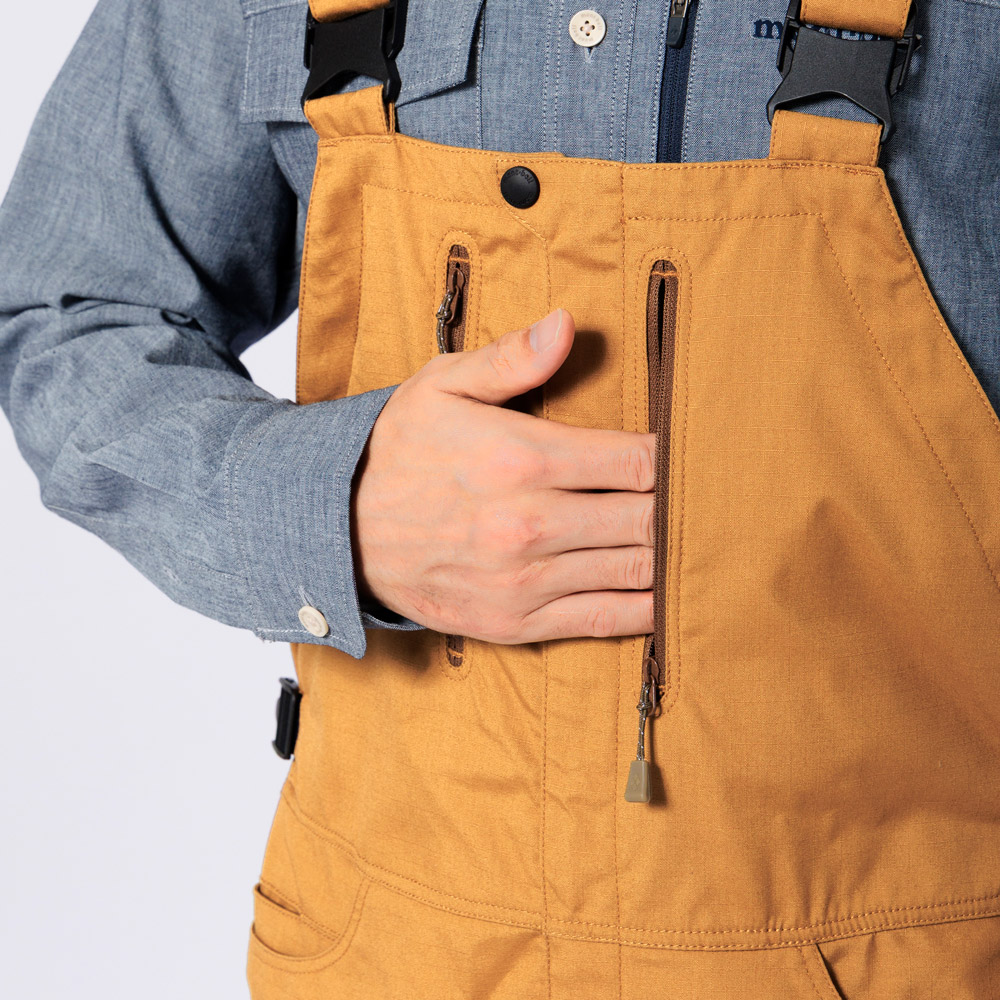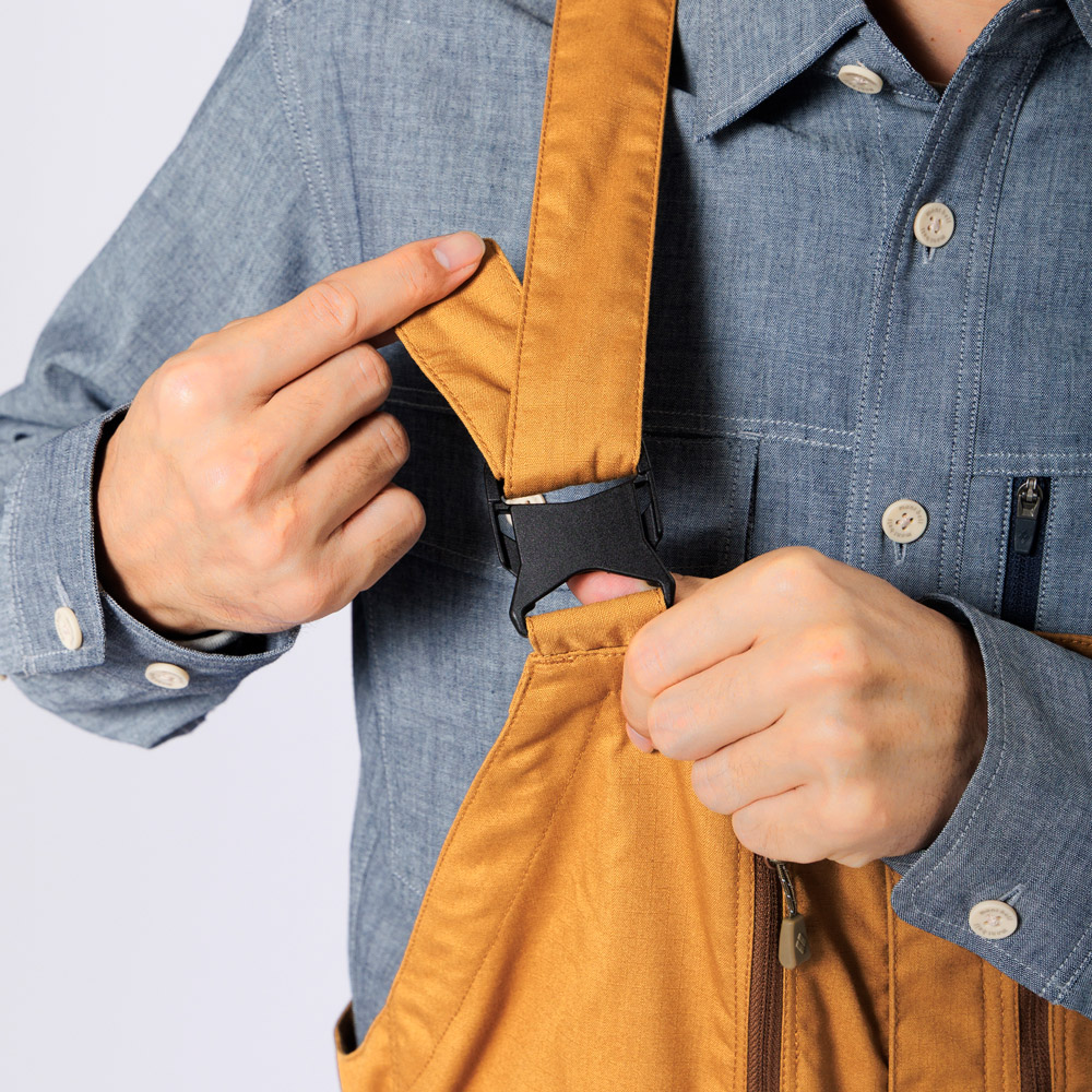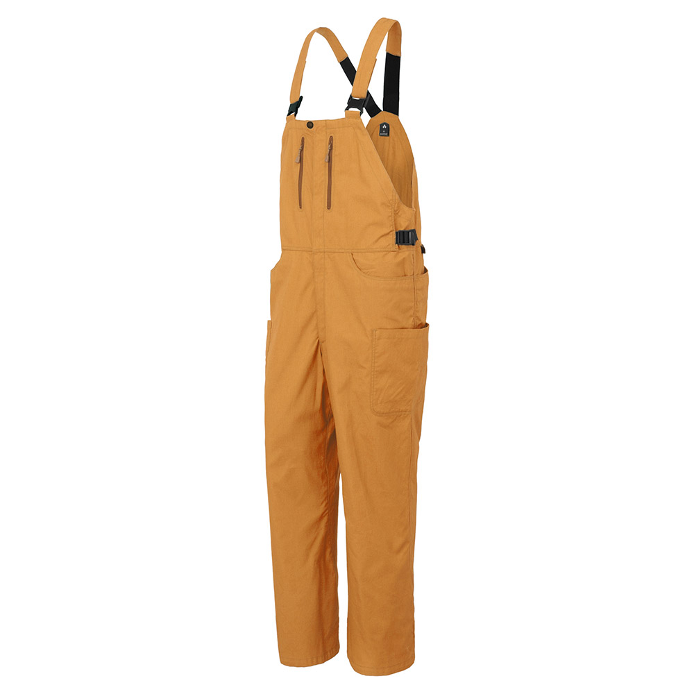 モンベルが独自に開発した難燃性素材フレアテクト®を使用したビブです。野外での調理やたき火などで火の粉を受けても、穴があきにくくなっています。道具や小物の収納に便利なポケットを多数備え、火を扱うシーンだけでなく、作業着としての着用にも適しています。ショルダーベルトは背面側にゴムを配置することで、しゃがんだ体勢でも突っ張りにくくなっています。 ※火から完全に身を守るものではありません。