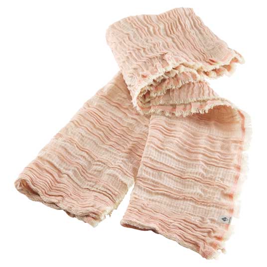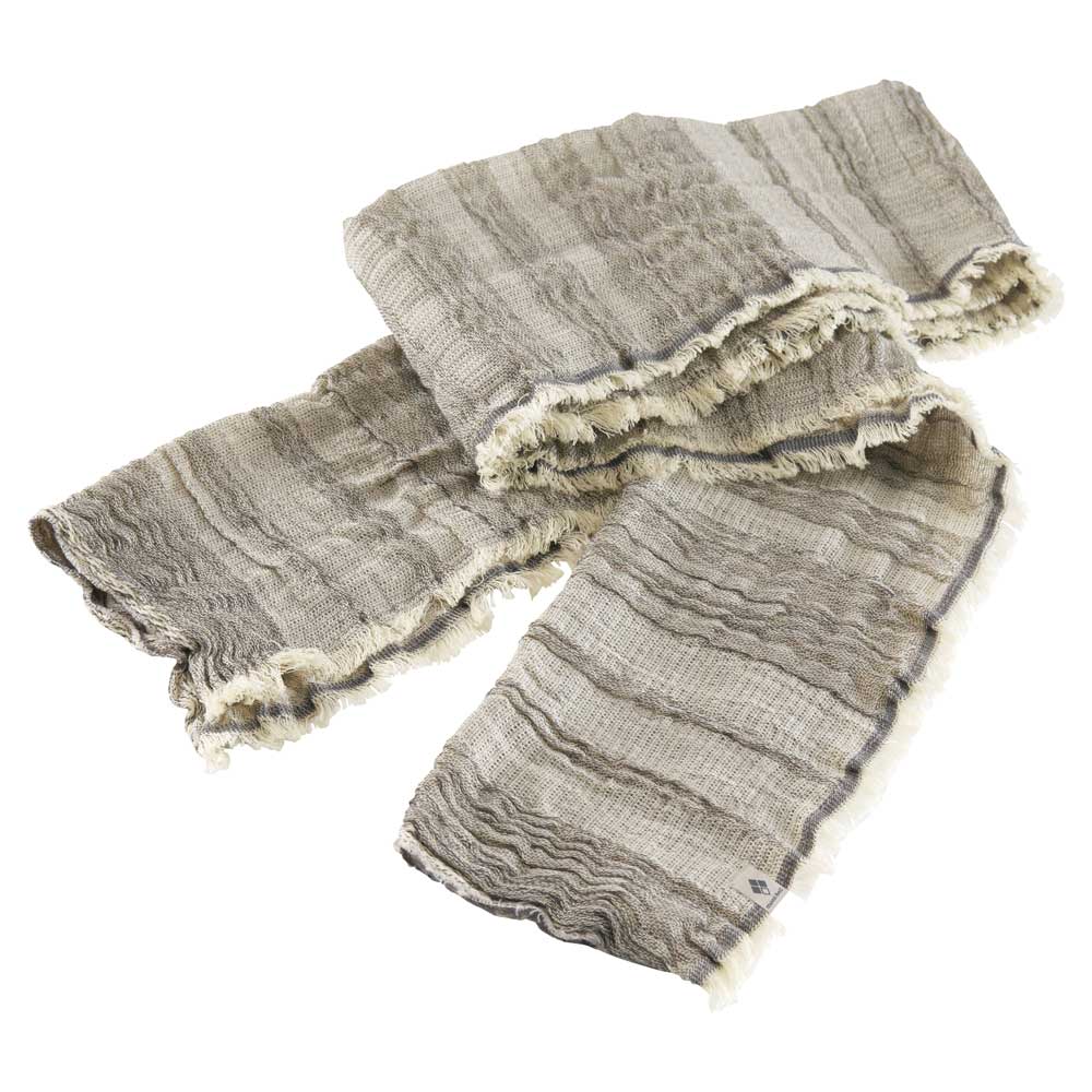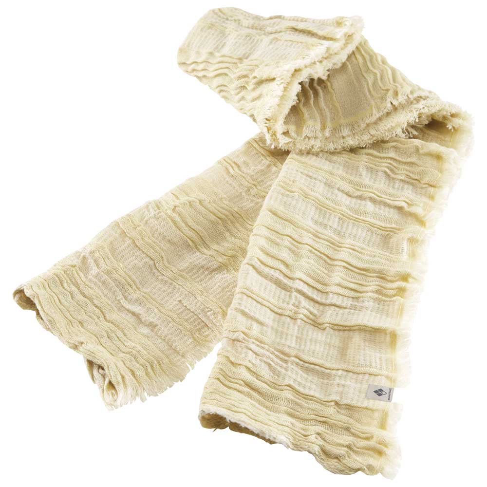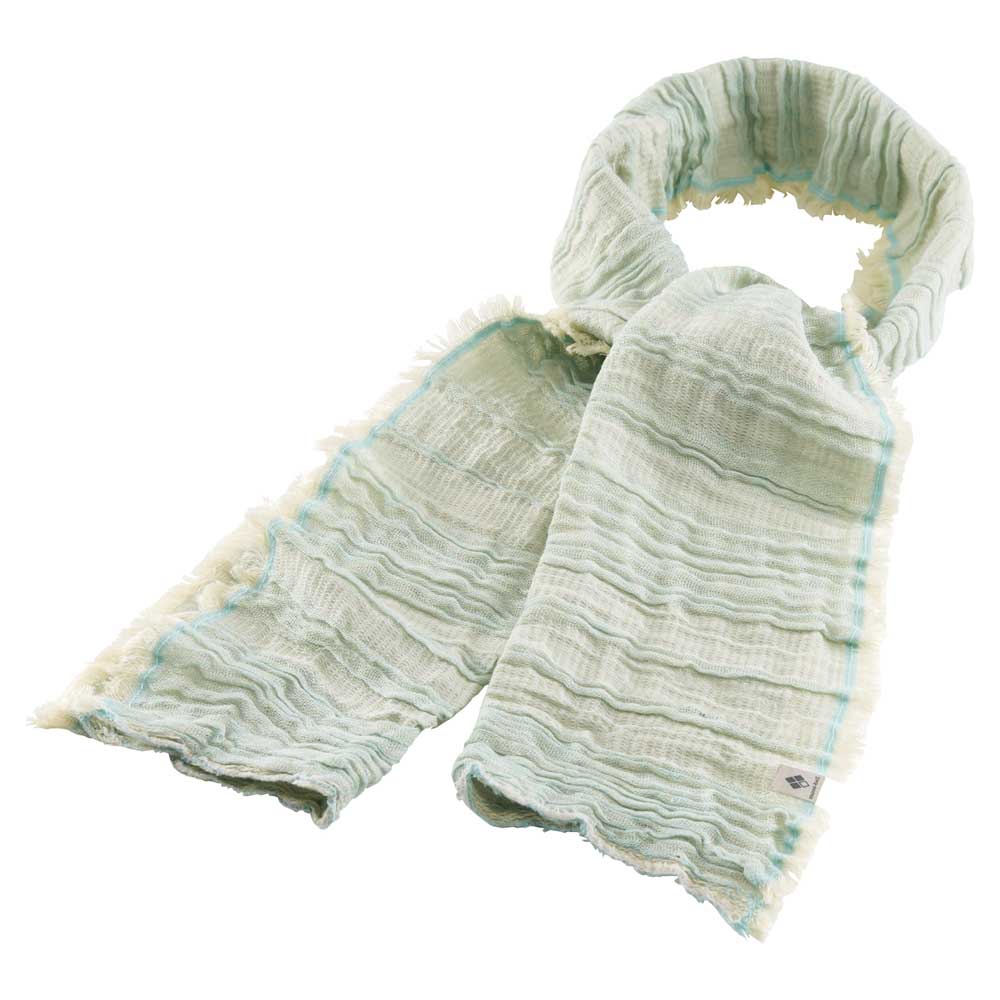 コットンに捲縮加工を施すことで、うねりのあるナチュラルな質感に仕上げた夏用マフラーです。優れた吸汗性も備えるため、マフラーとしてだけでなくタオルとしても活躍します。