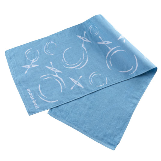 オリジナルプリントを施した手ぬぐい(表面)と、吸汗性に優れる柔らかなパイル地のタオル(裏面)という、2つの表情と機能を持つユニークなアイテムです。通常の手ぬぐいやタオルよりも寸法が長めなので、首に巻いても使いやすい仕様です。