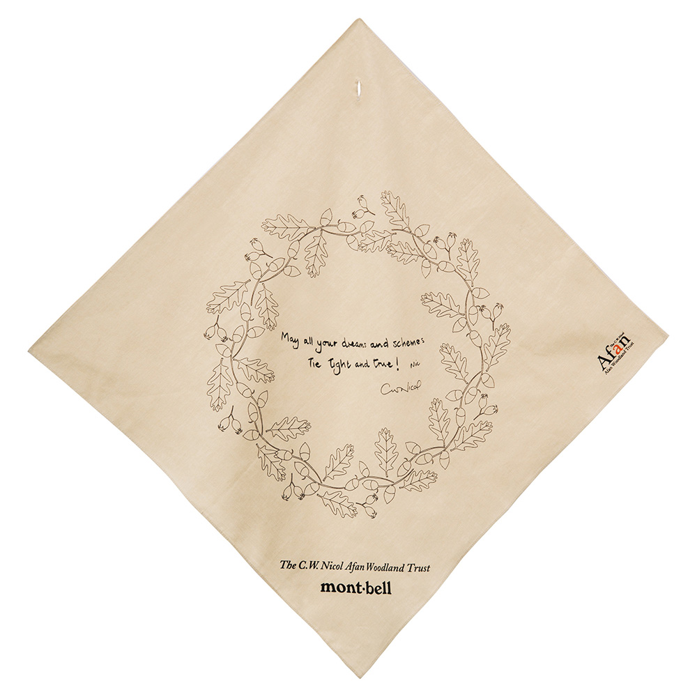 肌触りがよく吸水性に優れたコットン生地で作られたバンダナです。スカーフ、マスク、包帯など、さまざまな使い方ができます。このバンダナの売り上げの一部は、「一般財団法人C.W.ニコル・アファンの森財団」の活動に役立てられます。