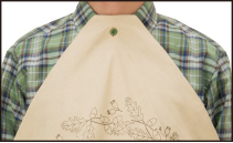 シャツの第一ボタンに装着して、ナプキンとして使用できます。