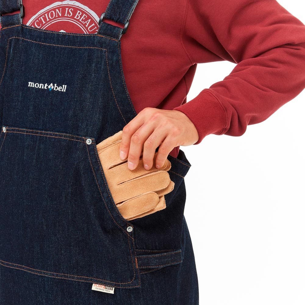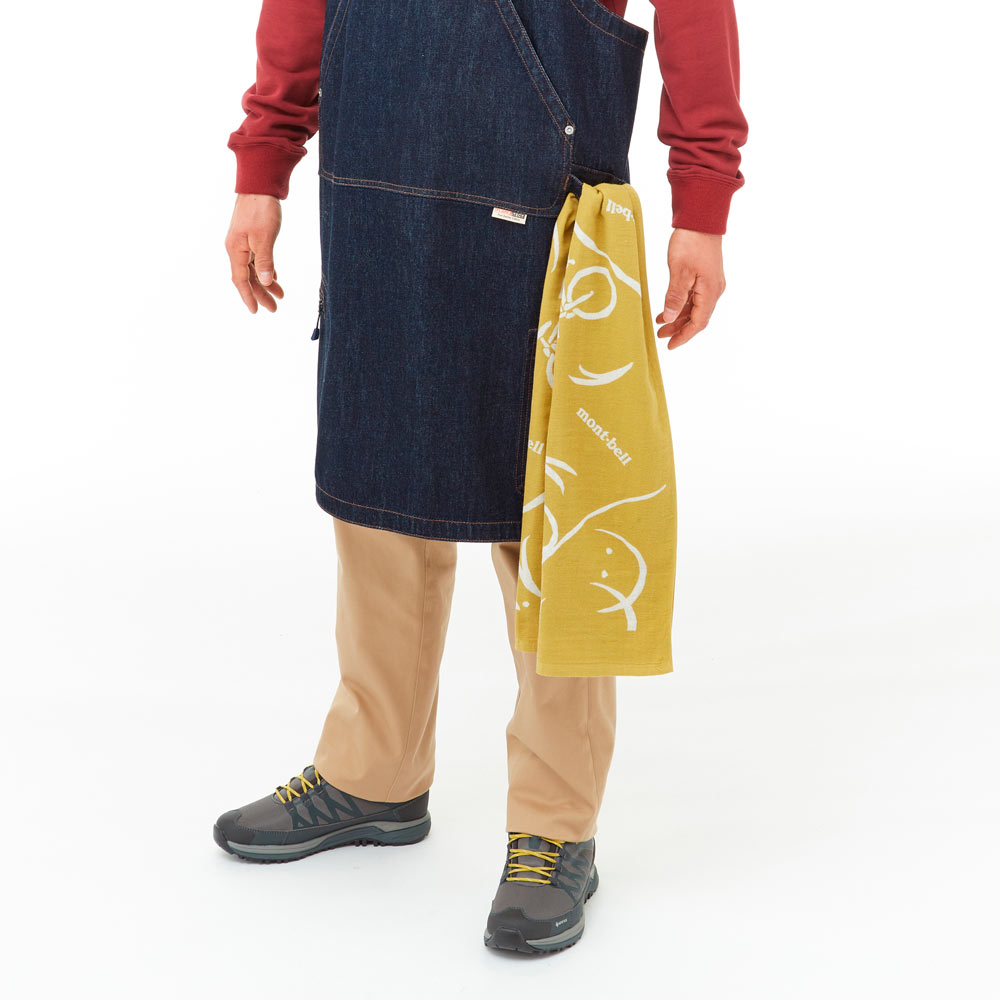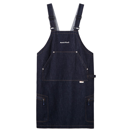 モンベルが独自に開発した難燃性素材フレアテクト®を使用したエプロンです。野外での調理やたき火などで、火の粉を受けても穴が開きにくくなっています。風合いの変化を楽しむことができるデニム生地で、キャンプから普段使いまで幅広く着用できます。タオルなどを掛けられるループや収納に便利なポケットを多数備えています。