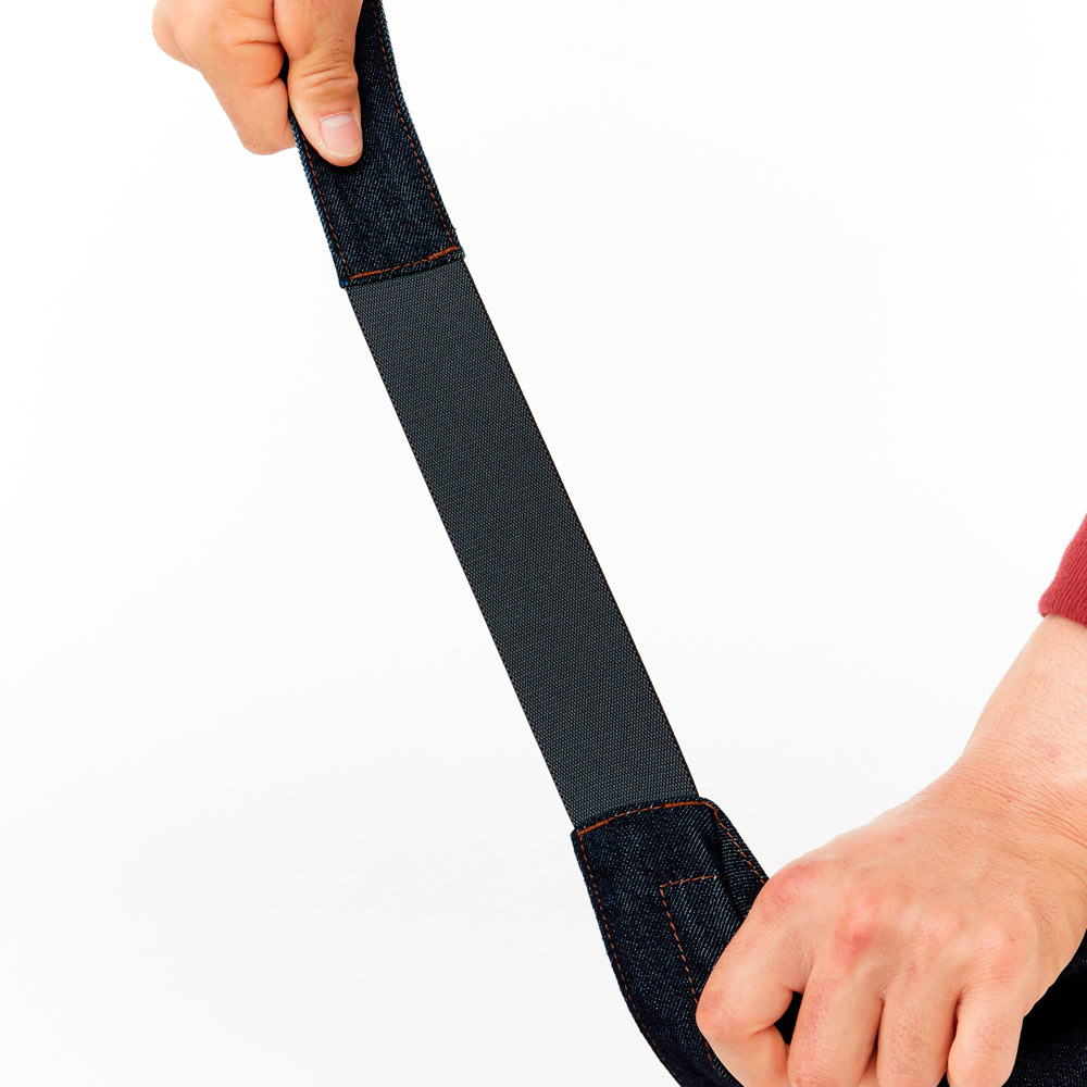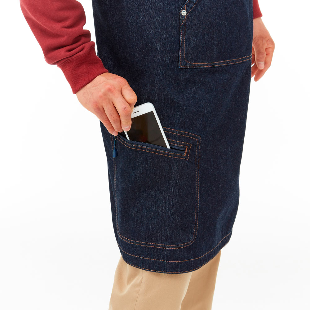 【特長】ポケット3個(裾2〈ジッパー付き〉、フロント胸ポケット1)、手ぬぐいやタオルなどを掛けられるループ/肩ひも調整パーツ付き