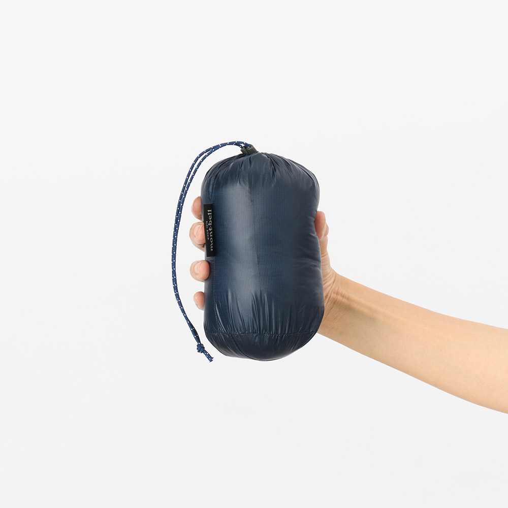 【収納サイズ】φ10×12cm【特長】ダウンプルーフ加工/ジッパーがあごに当たらない仕様/ポケット2個(腰)/スタッフバッグ付き