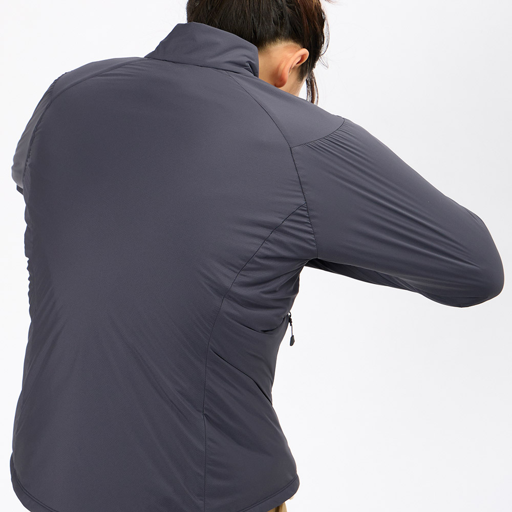 優れた透湿性を実現した独自のシェル素材を使用。発汗量が多いシーンでもウエア内をドライに保ち、不快感を軽減するとともに体温の低下を防ぎます。