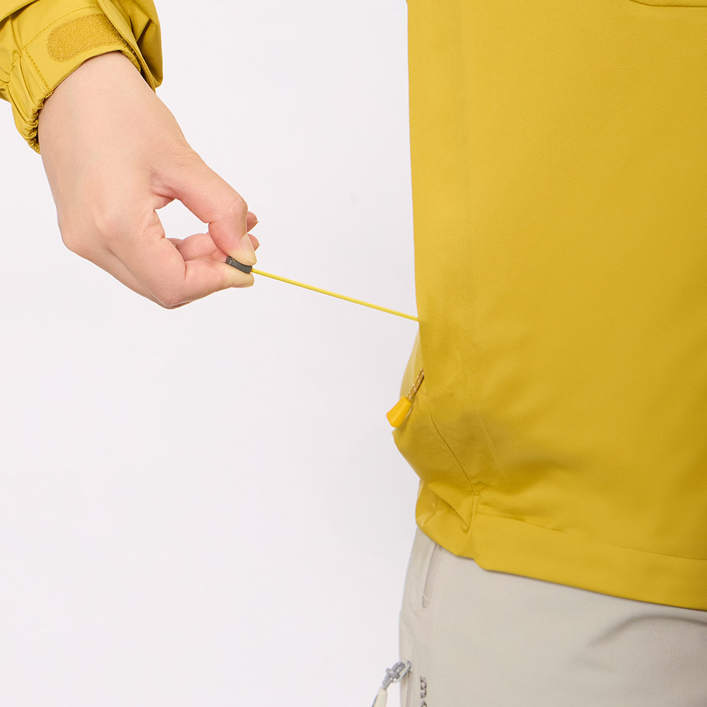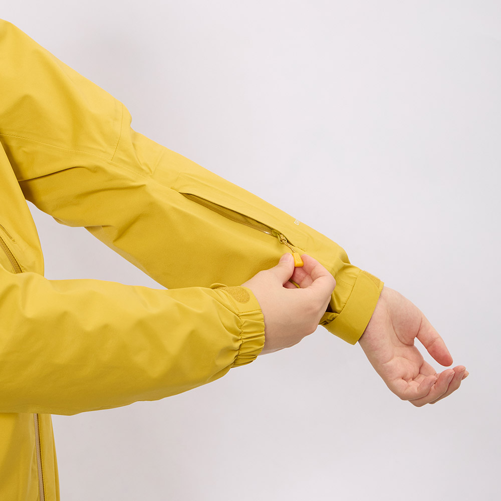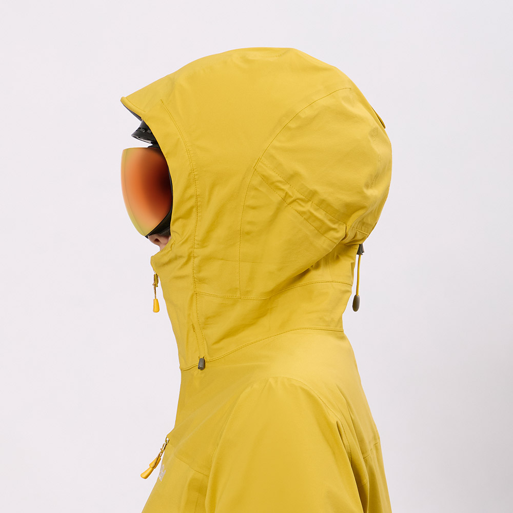 【特長】トライアクスルフード / フィット感を高める独自の立体パターン / 高めの襟元 / ジッパーが顔に当たらない仕様 / 立体裁断(肘) / アルパインカフ / アクアテクト®ジッパー / リードインコード・システム(裾) / リフト券やICチップを入れられる左袖のポケット
