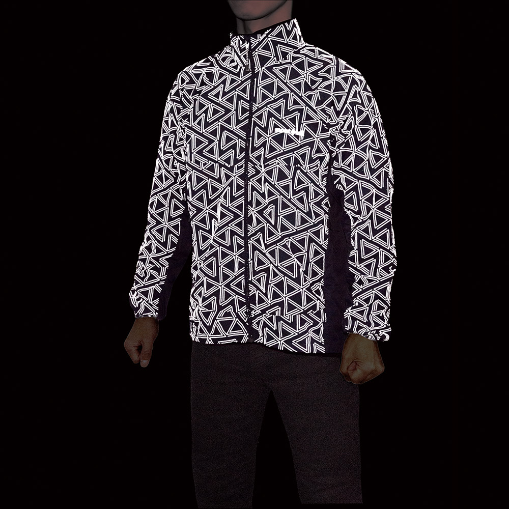 車のライトなどが当たると反射して光る特殊プリントを全面に施し、暗闇でも視認されやすい、安全に配慮したジャケットです。夜間のジョギングや犬の散歩など、普段使いのシェルとして幅広くご使用いただけます。軽量・コンパクトで携行にも便利です。【こちらは海外販売モデルのため、日本サイズと異なります。ご購入の際は必ずサイズ表をお確かめください。】