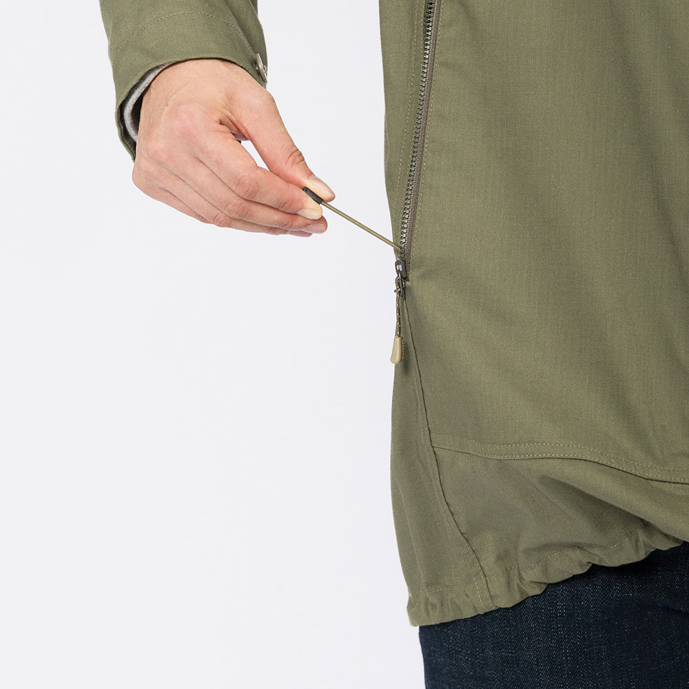 モンベルが独自に開発した難燃性素材フレアテクト®を使用したパーカです。野外での調理やたき火などで火の粉を受けても、穴があきにくくなっています。薄手のダウンやフリースの上からでも羽織れるゆとりのあるシルエットで、丈が長めのデザインです。コットンのような自然な風合いと適度なハリを持ち、キャンプから普段使いまで幅広く着用できます。背中にグローブなどを収納できる大型ポケットを備えています。やや薄手の生地を使用し、朝晩の肌寒い時季は一枚で、秋から冬にかけてはダウンなどの上から羽織り、幅広い季節での着用が可能です。【こちらは海外販売モデルのため、日本サイズと異なります。ご購入の際は必ずサイズ表をお確かめください。】