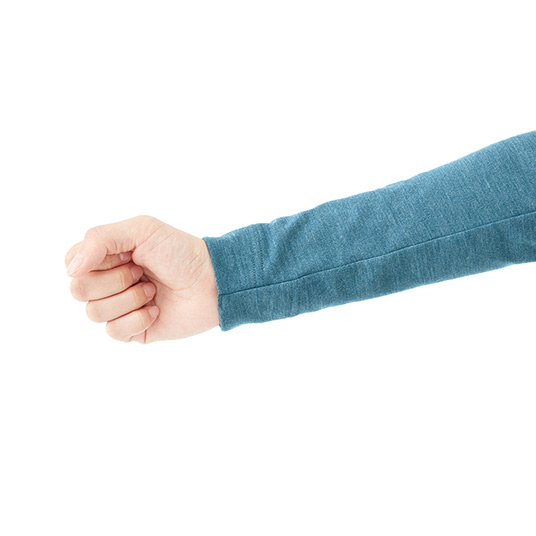 袖口の縫い目を斜め(スパイラル状)にすることでよく伸び、肌あたりの悪さや不快な締め付け感のない快適な着心地を実現しています。