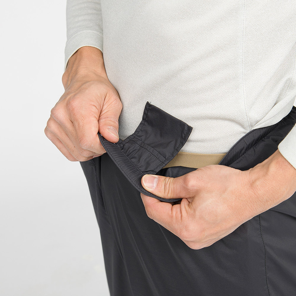 【特長】ポケット1個(腰内1〈コインポケット〉)/フロントジッパーなし/ウエストはゴムとひもでフィット/スタッフバッグ付き/サムエシステム/ボトムジッパー