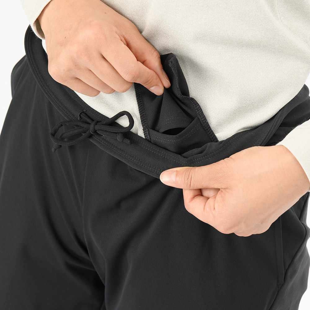 【特長】フロントジッパーなし / ウエストはゴムとひもでフィット / 2WAYストレッチ / 立体裁断【ポケット】5個(ジッパー付き〈サイド1〉、ジッパーなし〈腰2、サイド1、コインポケット左内側1〉【スタイル】生地厚:中厚手フィット:レギュラー(締め付けが少ない適度なフィット感)裾まわり:テーパード(膝下から裾に向かって細くなり、足さばきがしやすい)
