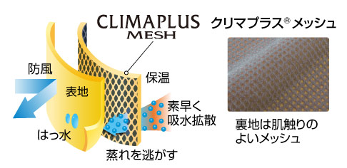 裏地:クリマプラス®メッシュ[ポリエステル〈吸汗加工〉]
