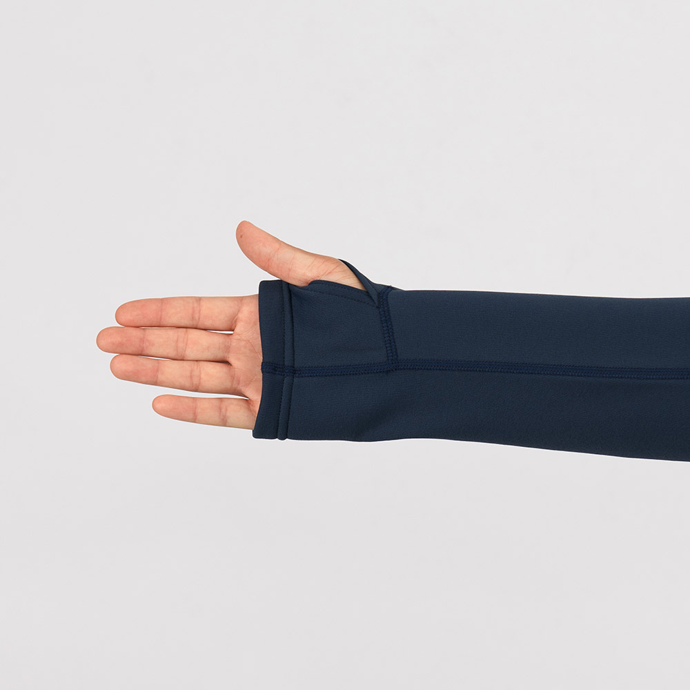 【特長】縫い目を平らに仕上げた肌あたりの良い裏面 / ジッパーがあごに当たらない仕様 / スランテック®カフ【ポケット】3個(ジッパー付き〈腰2、左胸1〉)