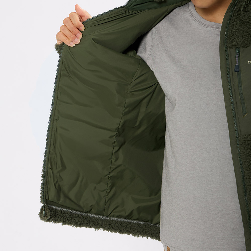 羊毛のようなモコモコとした風合いを持ち、非常に高い保温性を備えた厚手のフリース素材に、防風性を高める裏地を付けたジャケットです。アウターとして冬季の活動を支えます。裏地は滑りが良く、重ね着しやすくなっています。背中と袖の裏地を斜めに配置するバイアス・ストレッチにより、つっぱり感のない快適な着心地です。【こちらは海外販売モデルのため、日本サイズと異なります。ご購入の際は必ずサイズ表をお確かめください。】